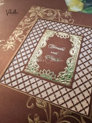 From our platform at Vishakha Collections, we offer an elegant series of Muslim wedding cards. These cards receive personalized attention throughout the construction process, resulting in wedding invitations that accurately convey the happiness and love of the coming event.