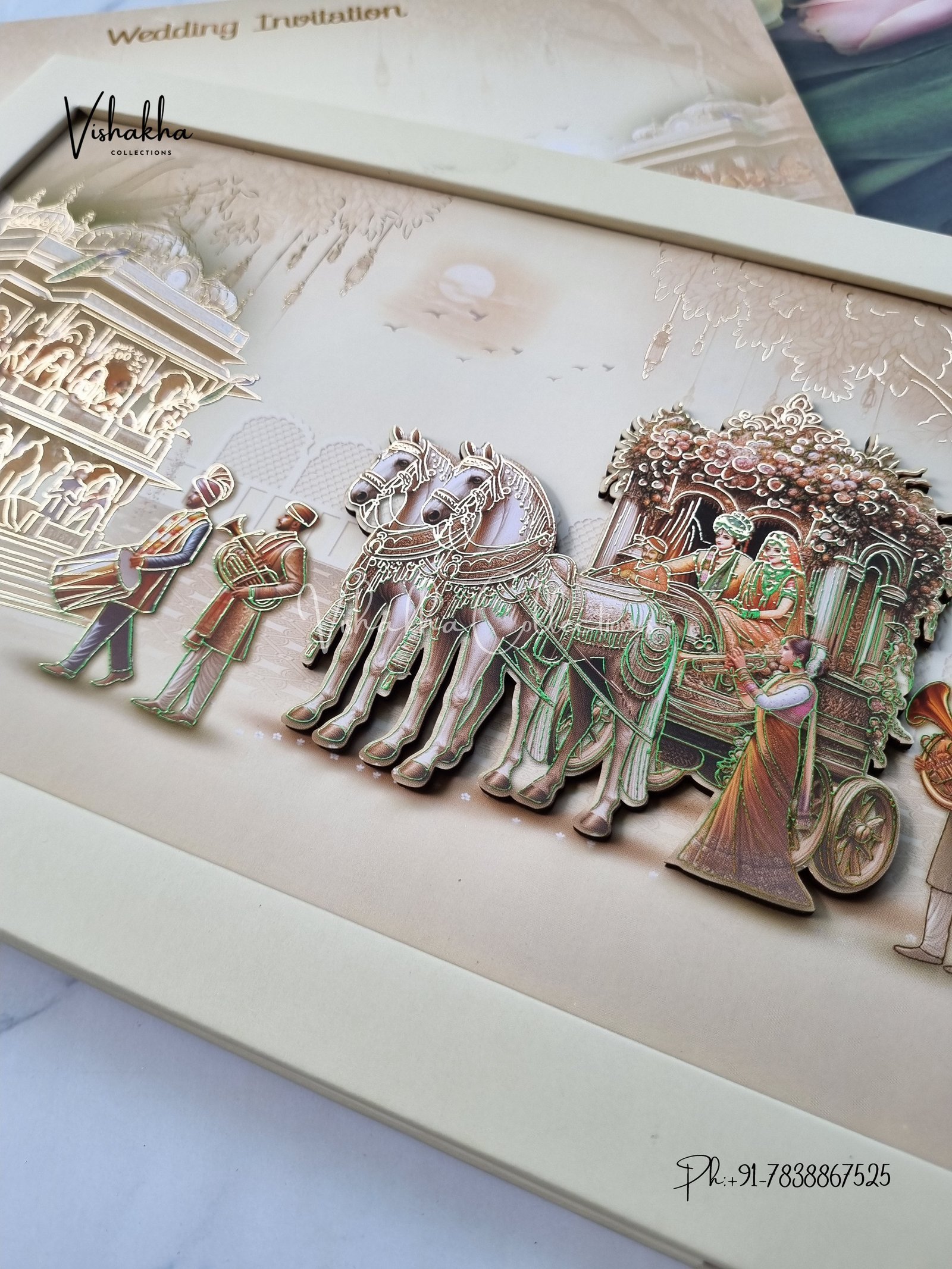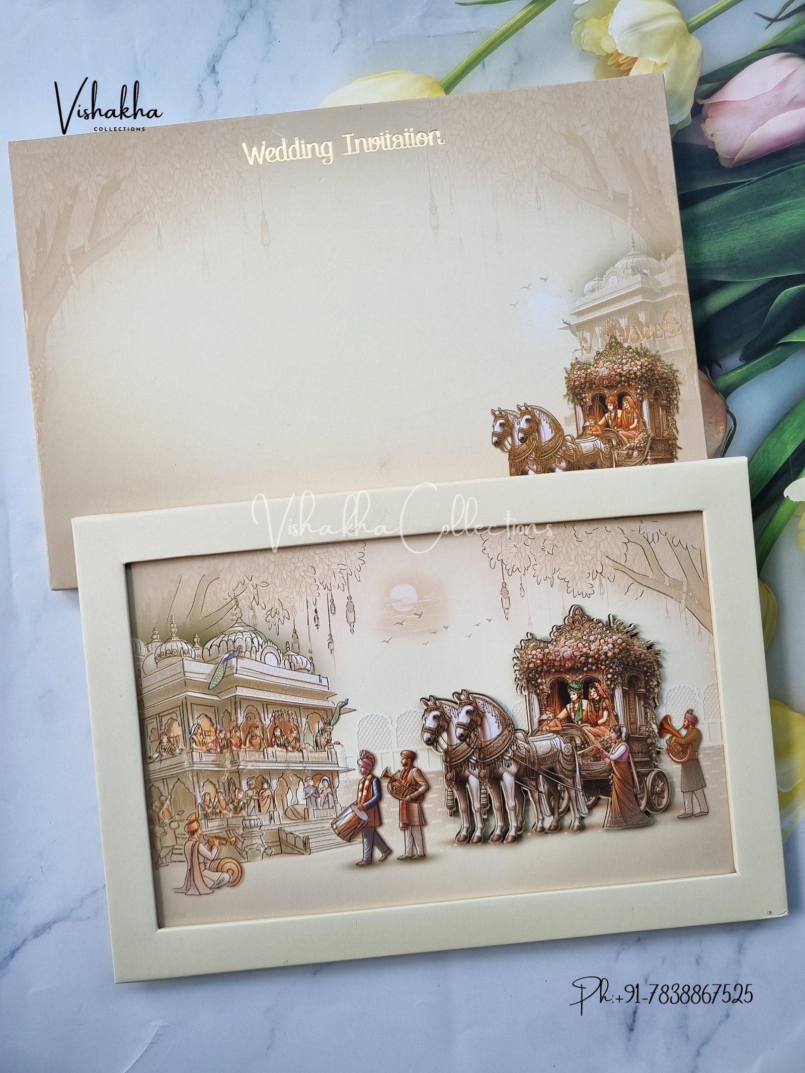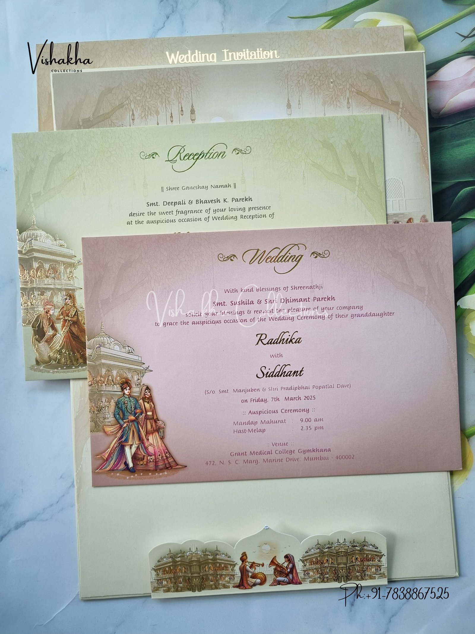 Vishakha Collections presents you beautiful luxury wedding invitation cards with all latest designs and the latest variety. Its just not a wedding invitation card but a beautiful feeling of love and relationship it carries for you. Beautifully printed and packed with a bundle of love. if you like it, dont think again, just go for it.If you are worrying about the quality of the product, send your doubts to us. We are here to help you. If you want in wholesale or bulk, dont forget to contact us.