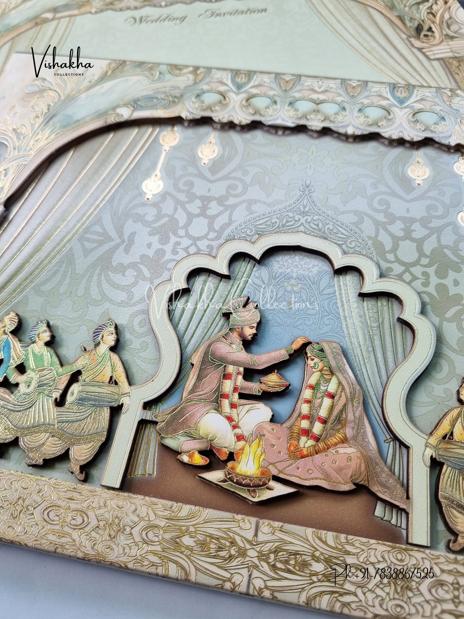 Vishakha Collections presents you beautiful luxury wedding invitation cards with all latest designs and the latest variety. Its just not a wedding invitation card but a beautiful feeling of love and relationship it carries for you. Beautifully printed and packed with a bundle of love. if you like it, dont think again, just go for it.If you are worrying about the quality of the product, send your doubts to us. We are here to help you. If you want in wholesale or bulk, dont forget to contact us.