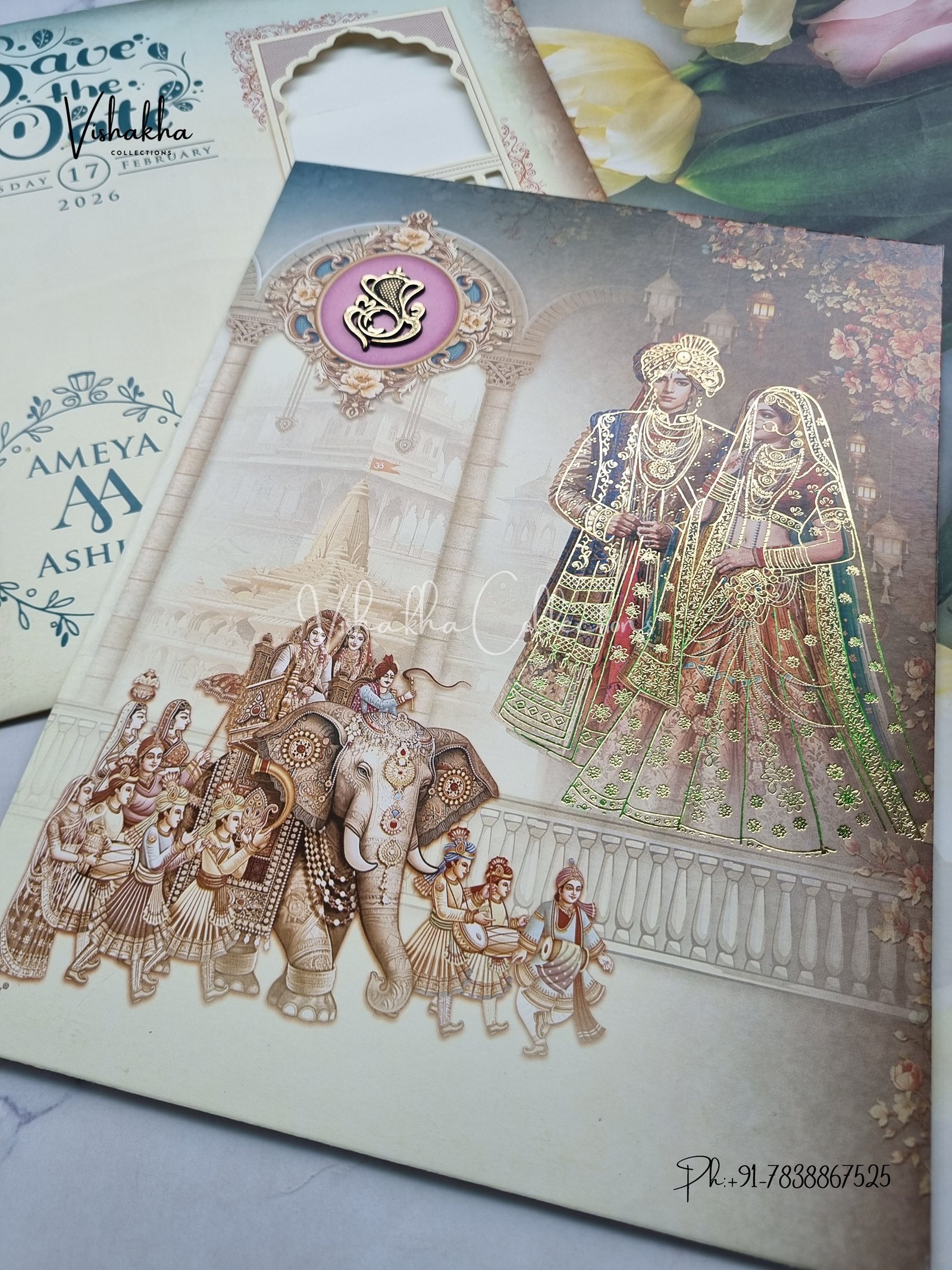 Vishakha Collections presents you beautiful luxury wedding invitation cards with all latest designs and the latest variety. Its just not a wedding invitation card but a beautiful feeling of love and relationship it carries for you. Beautifully printed and packed with a bundle of love. if you like it, dont think again, just go for it.If you are worrying about the quality of the product, send your doubts to us. We are here to help you. If you want in wholesale or bulk, dont forget to contact us.