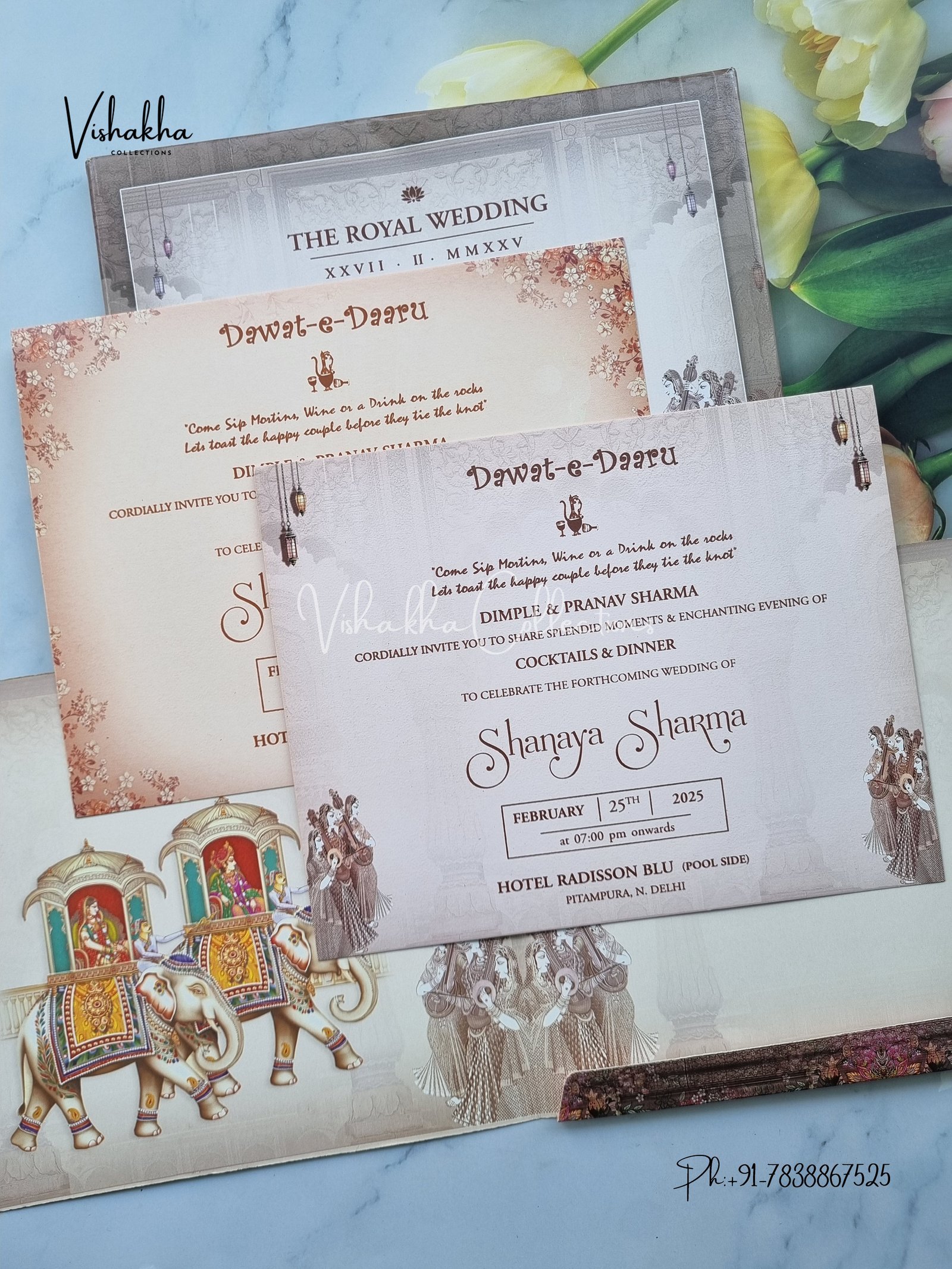 Vishakha Collections presents you beautiful luxury wedding invitation cards with all latest designs and the latest variety. Its just not a wedding invitation card but a beautiful feeling of love and relationship it carries for you. Beautifully printed and packed with a bundle of love. if you like it, dont think again, just go for it.If you are worrying about the quality of the product, send your doubts to us. We are here to help you. If you want in wholesale or bulk, dont forget to contact us.