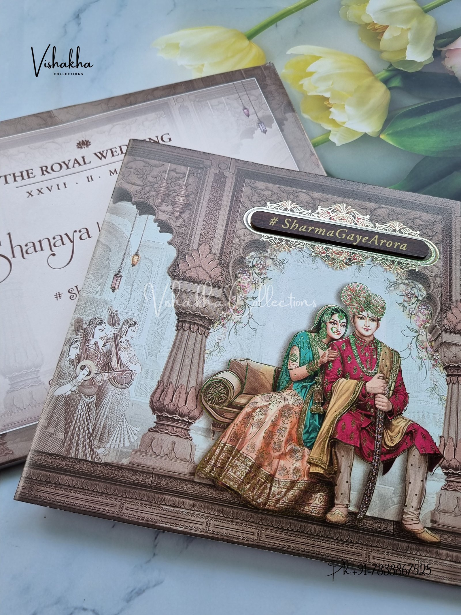 Semi Box Dulah Dulhan Double Door Hindu invitation Cards ATS-5142