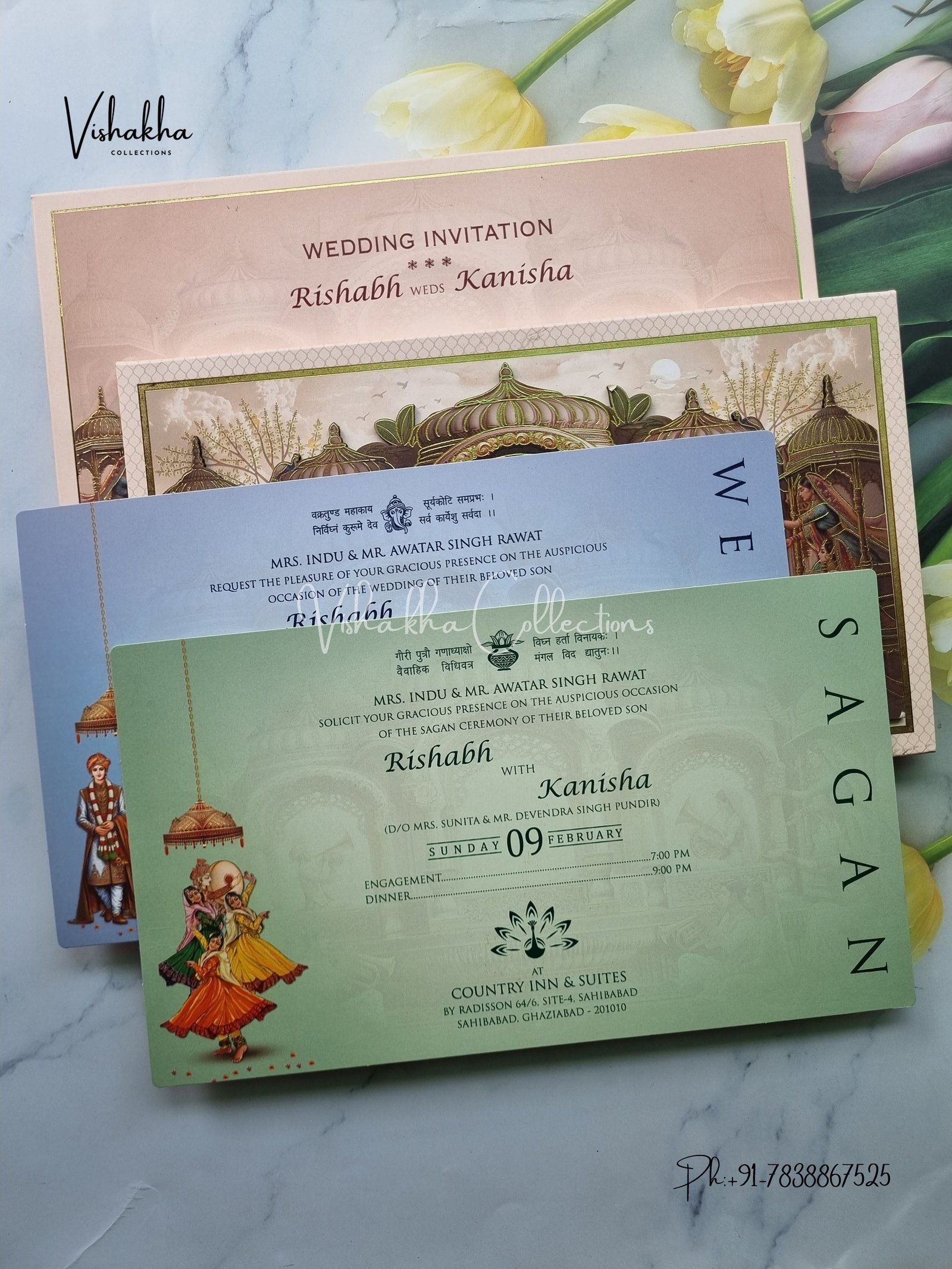 Vishakha Collections presents you with Barat Semi Box Dulah Dulhan Padded Laser Cut With Emblem Hindu Invitation Cards with all the latest designs and varieties. It’s just not a wedding invitation card but a beautiful feeling of love and relationship it carries for you. Beautifully printed and packed with a bundle of love.