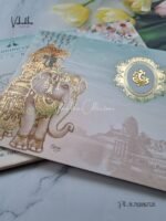 ₹30.00Barat Semi Box Hathi Dulah Dulhan Hindu invitation Cards ATS-5123