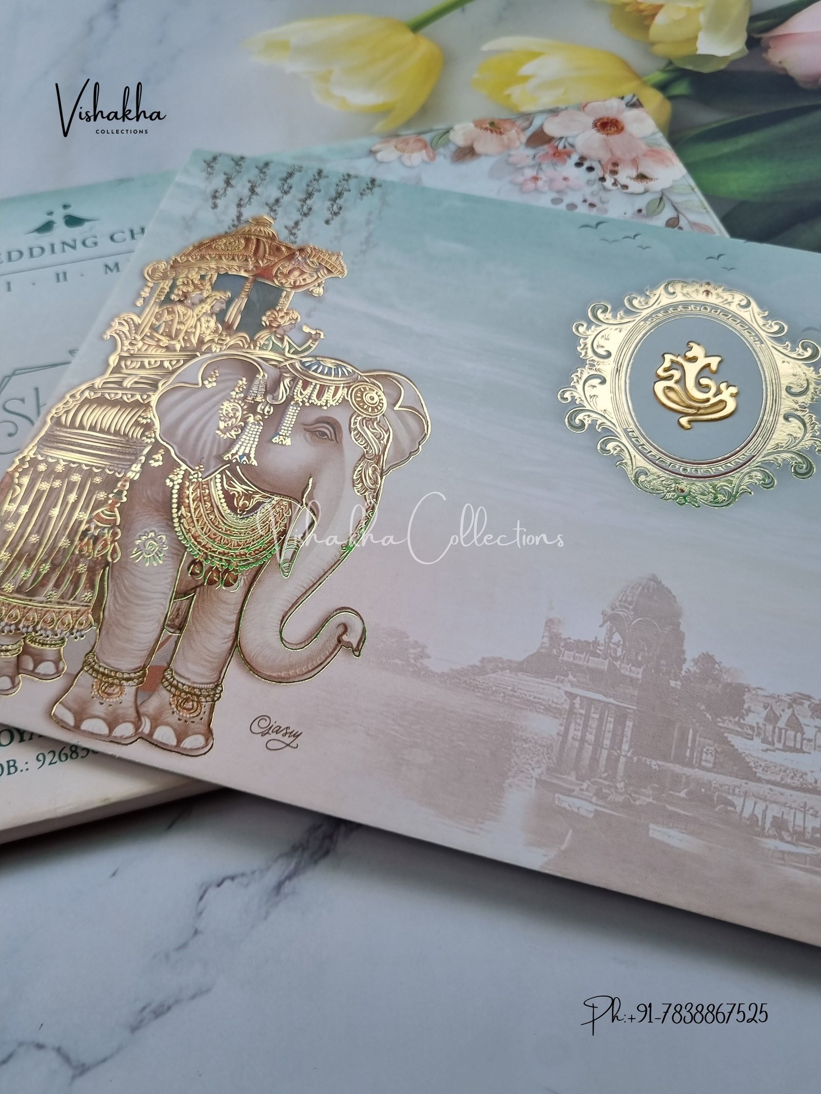 Barat Semi Box Hathi Dulah Dulhan Hindu invitation Cards ATS-1501