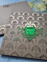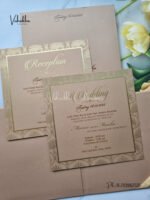 ₹154.00Beige and gold padded with name plate Wedding Invitation Card SK-3263