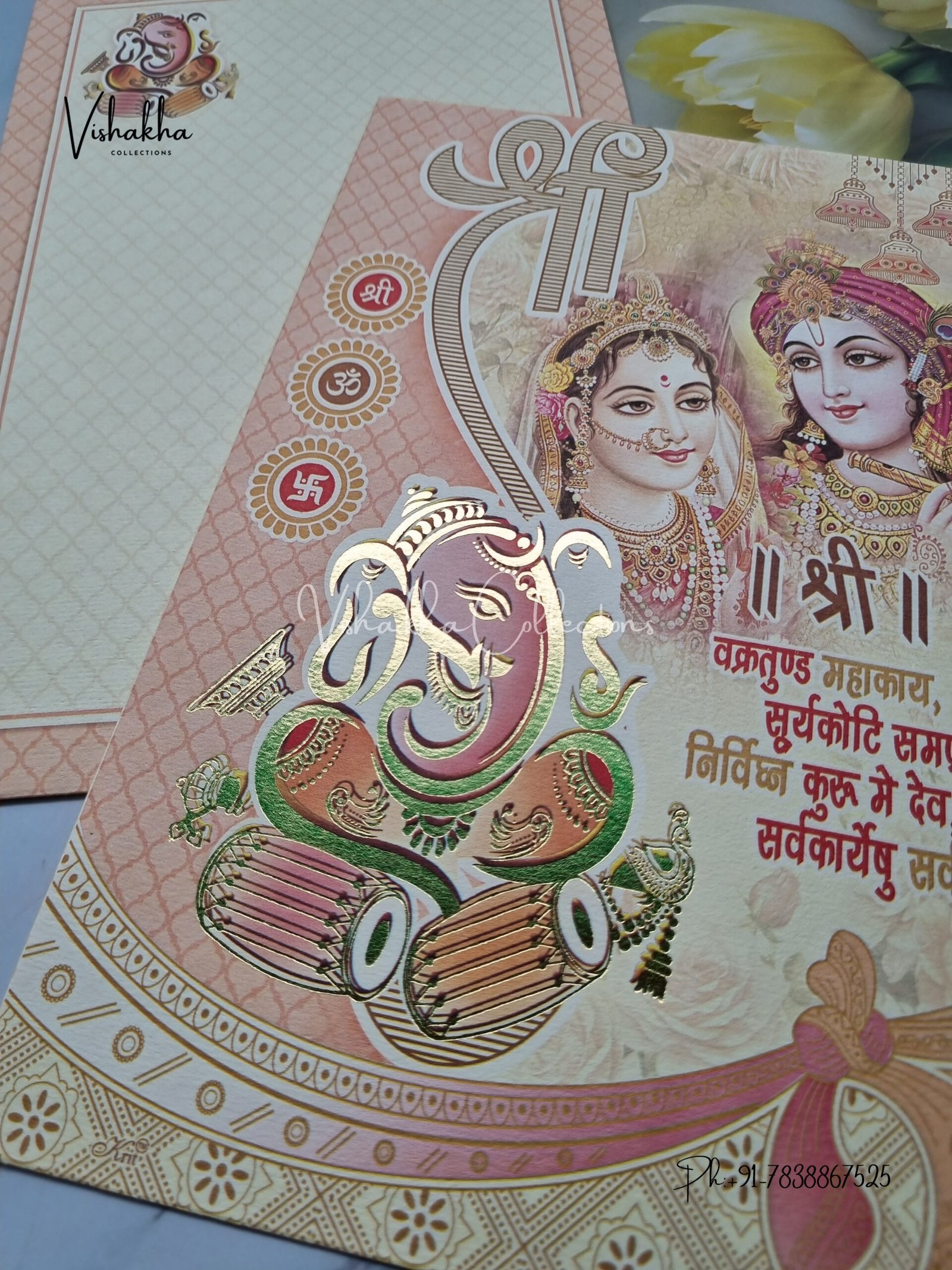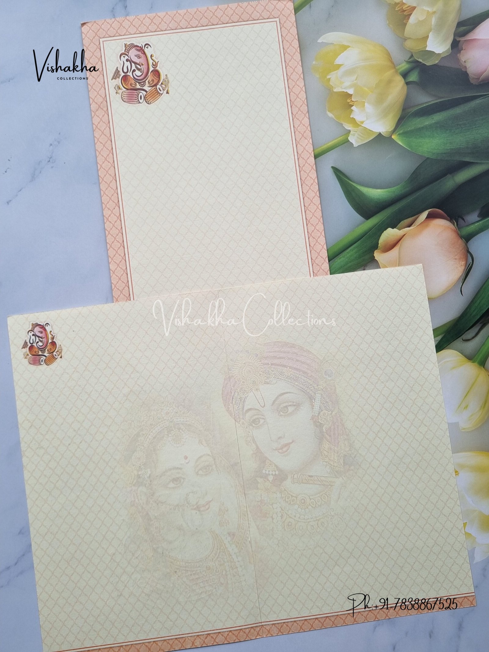 ₹7.50Beige Colour Ganesh with Radha Krishan Marriage invitation