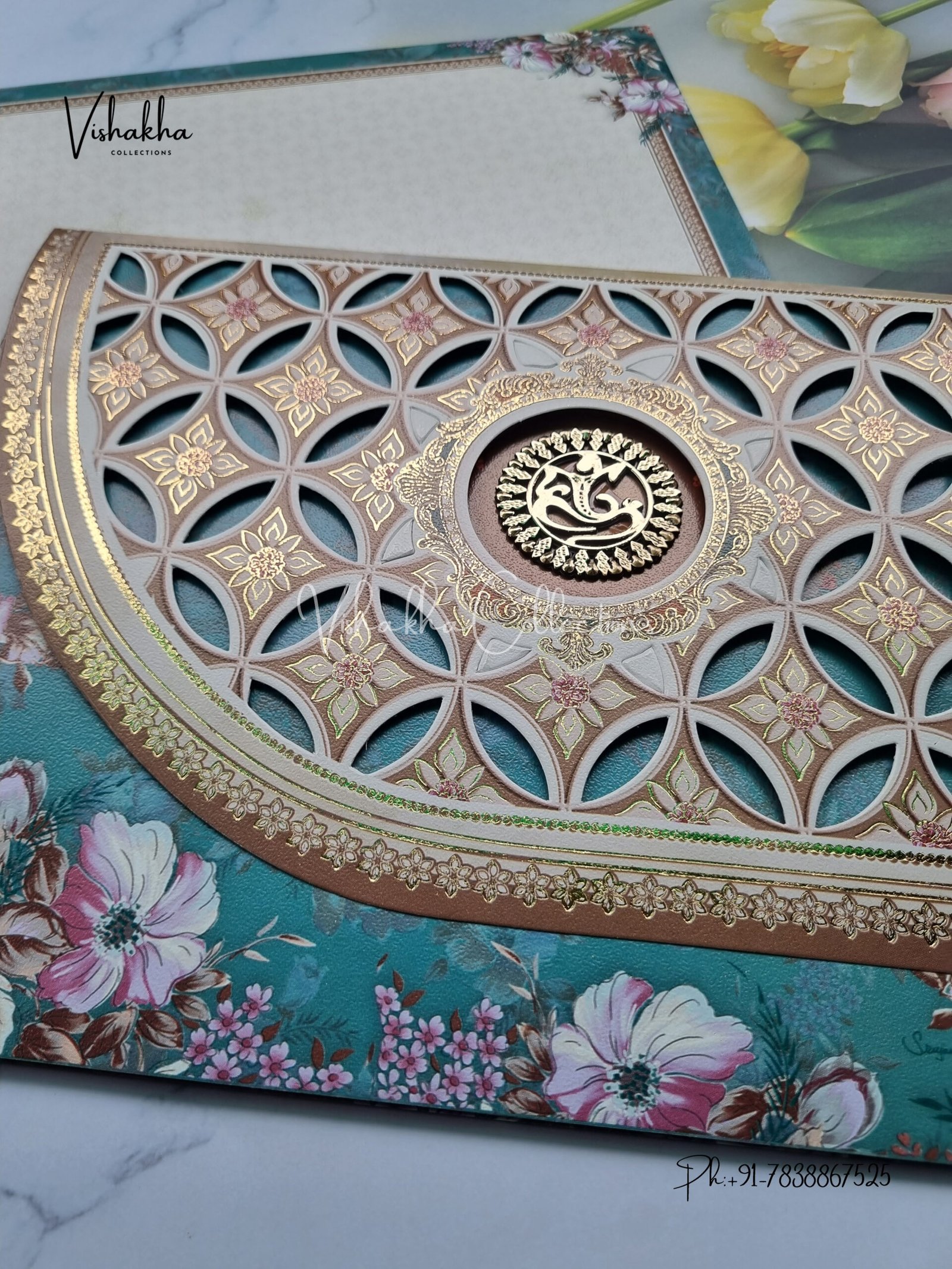 Vishakha Collections presents you beautiful luxury wedding invitation cards with all latest designs and the latest variety. Its just not a wedding invitation card but a beautiful feeling of love and relationship it carries for you. Beautifully printed and packed with a bundle of love. if you like it, dont think again, just go for it.If you are worrying about the quality of the product, send your doubts to us. We are here to help you. If you want in wholesale or bulk, dont forget to contact us.