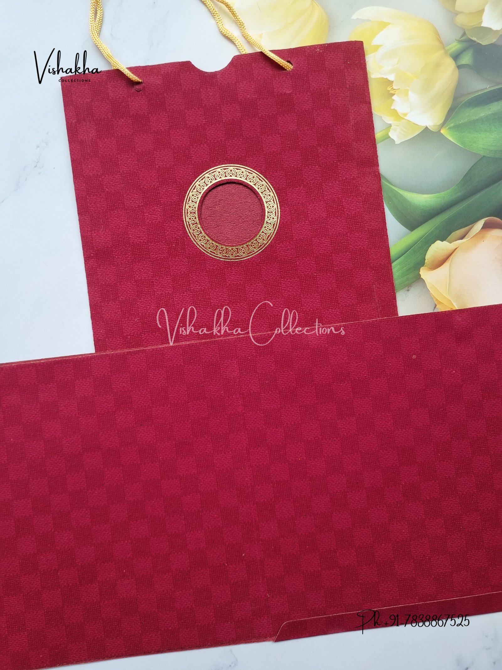 Vishakha Collections presents you beautiful luxury wedding invitation cards with all latest designs and the latest variety. Its just not a wedding invitation card but a beautiful feeling of love and relationship it carries for you. Beautifully printed and packed with a bundle of love. if you like it, dont think again, just go for it.If you are worrying about the quality of the product, send your doubts to us. We are here to help you. If you want in wholesale or bulk, dont forget to contact us.