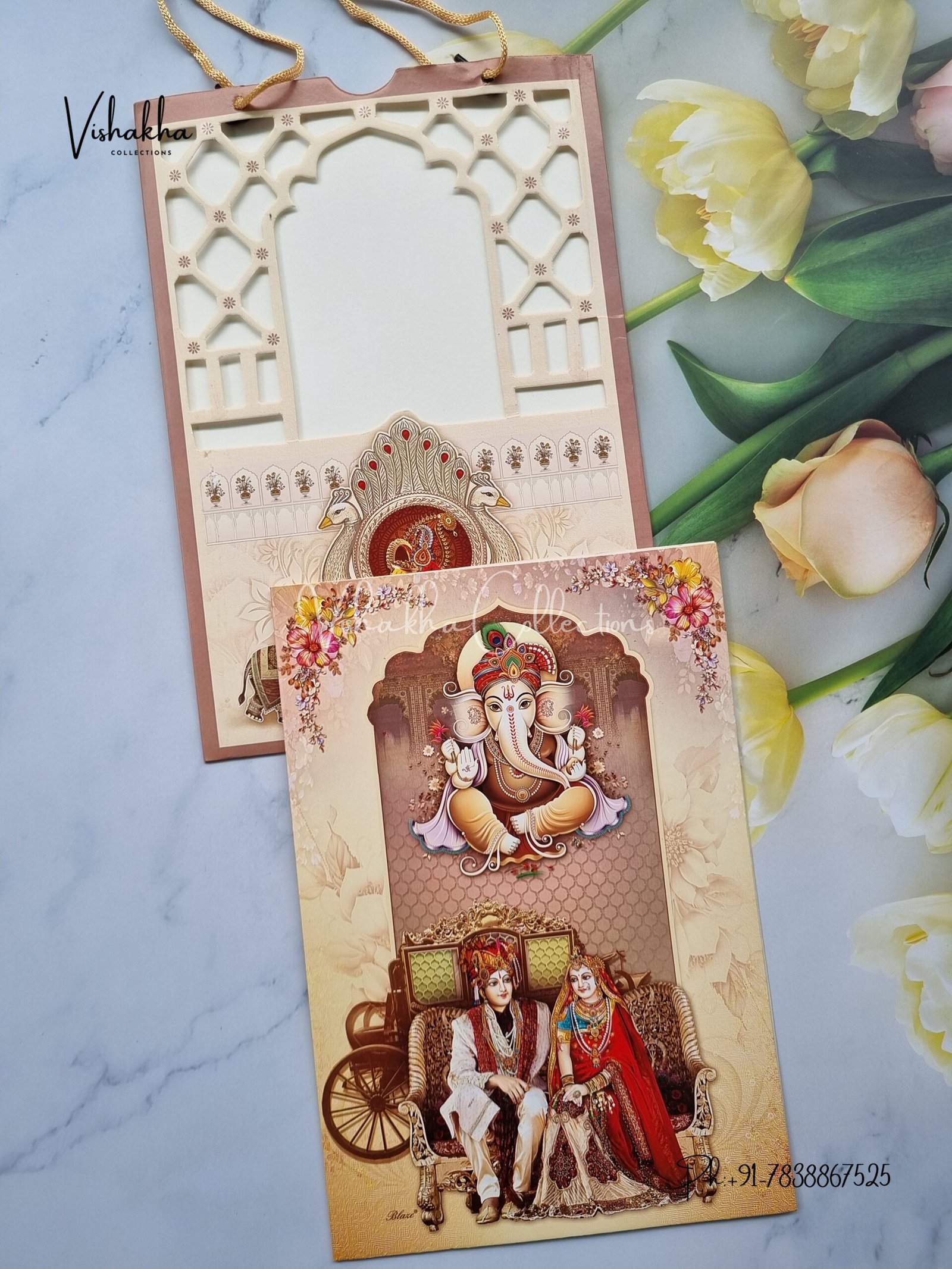 ₹20.00Carry Bag Style Royal Ganesh with Elephants and Bride and Groom Marriage invitation