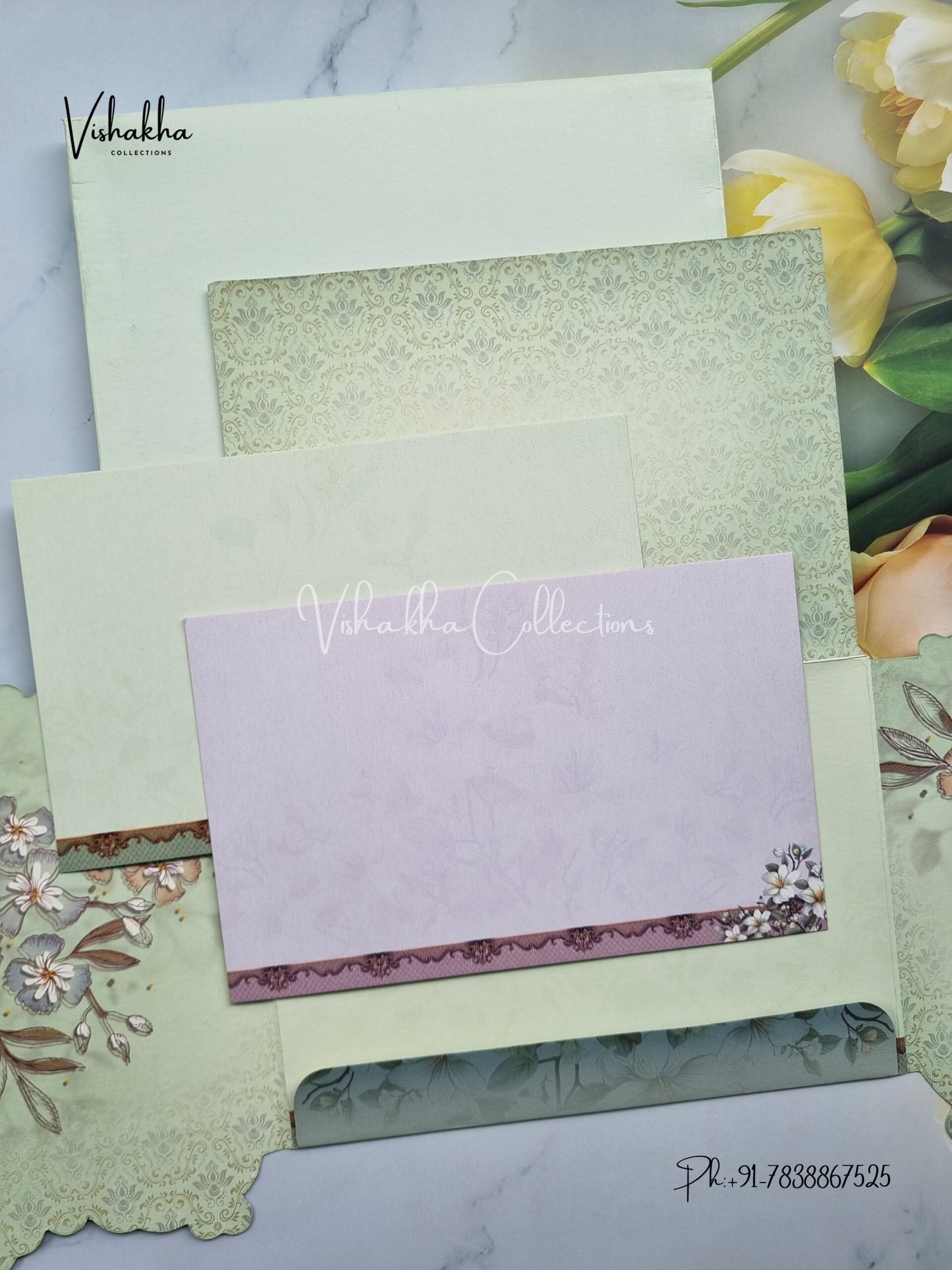 ₹28.00Classic Pastel Green and White Lilies themed in Butteryfly Pattern Wedding Invitation Card