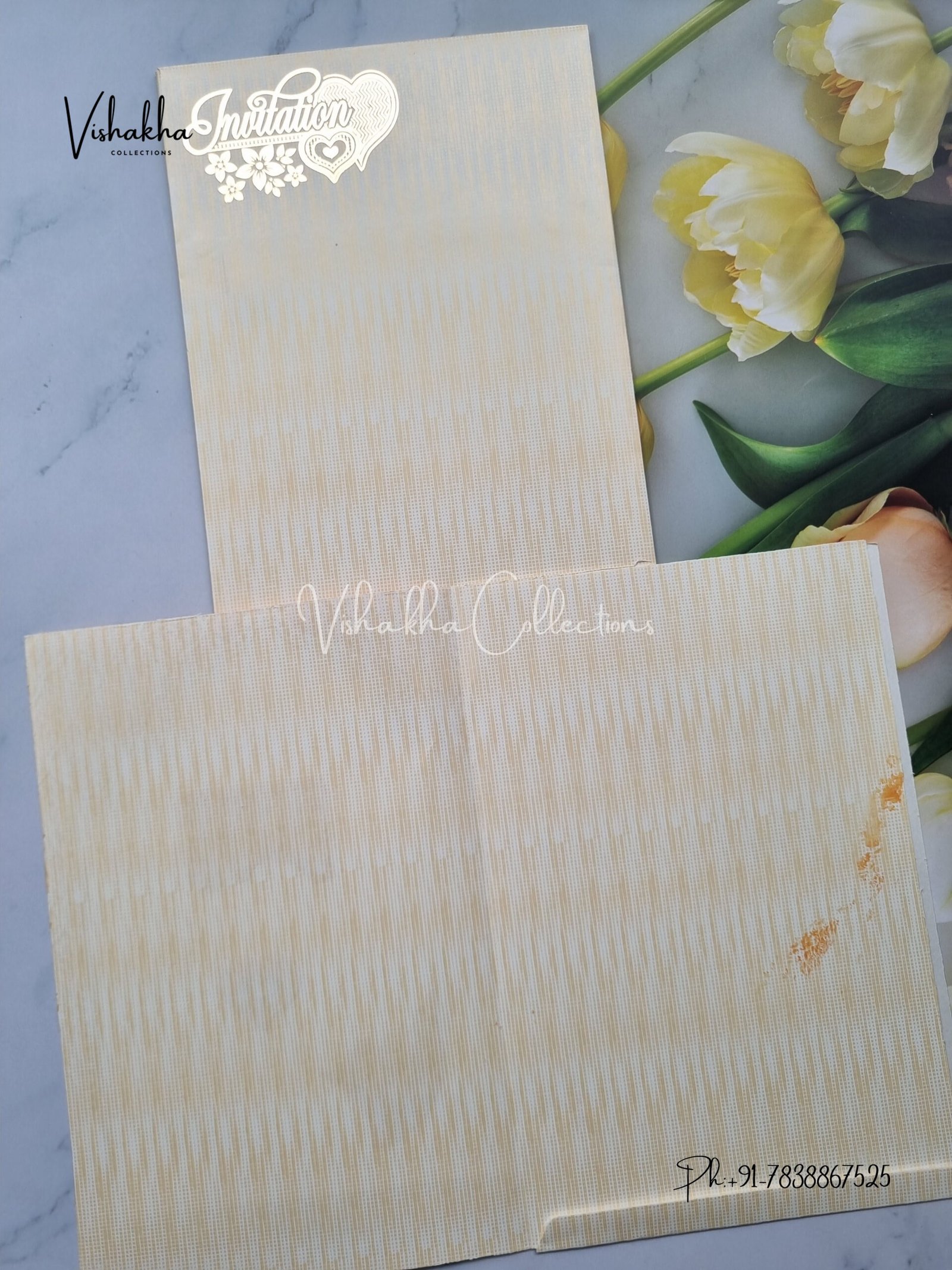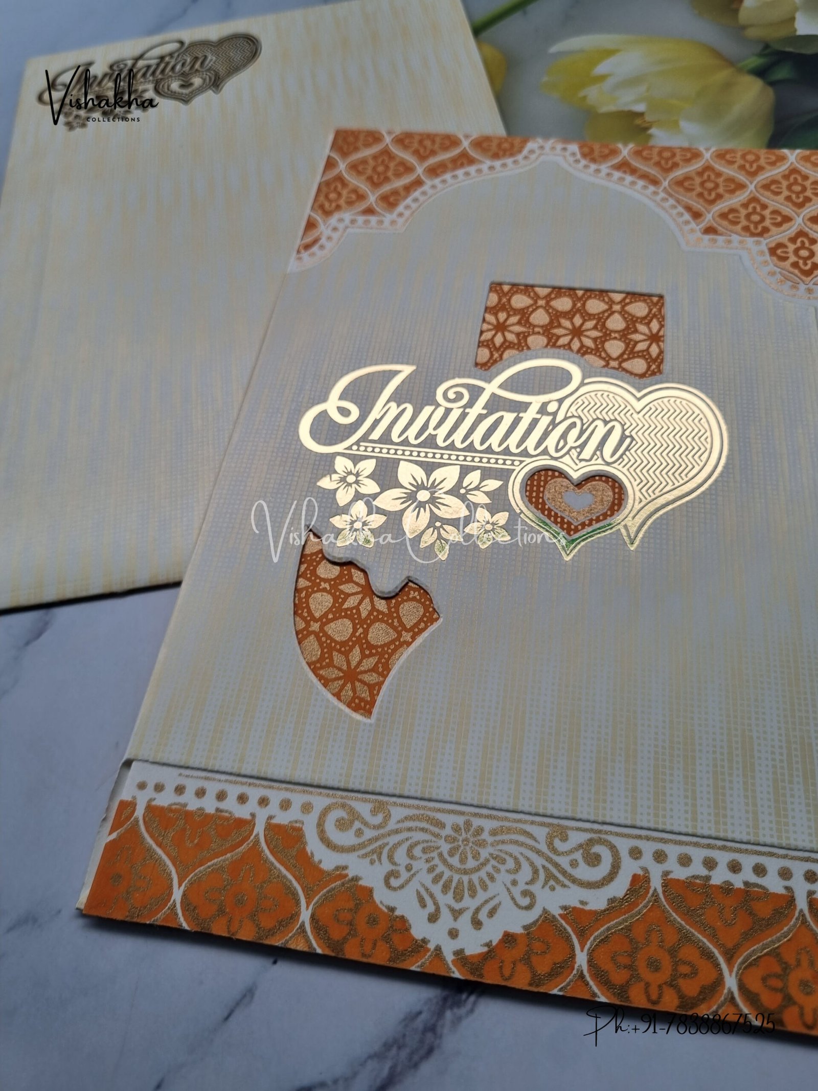 Vishakha Collections presents you beautiful luxury wedding invitation cards with all latest designs and the latest variety. Its just not a wedding invitation card but a beautiful feeling of love and relationship it carries for you. Beautifully printed and packed with a bundle of love. if you like it, dont think again, just go for it.If you are worrying about the quality of the product, send your doubts to us. We are here to help you. If you want in wholesale or bulk, dont forget to contact us.