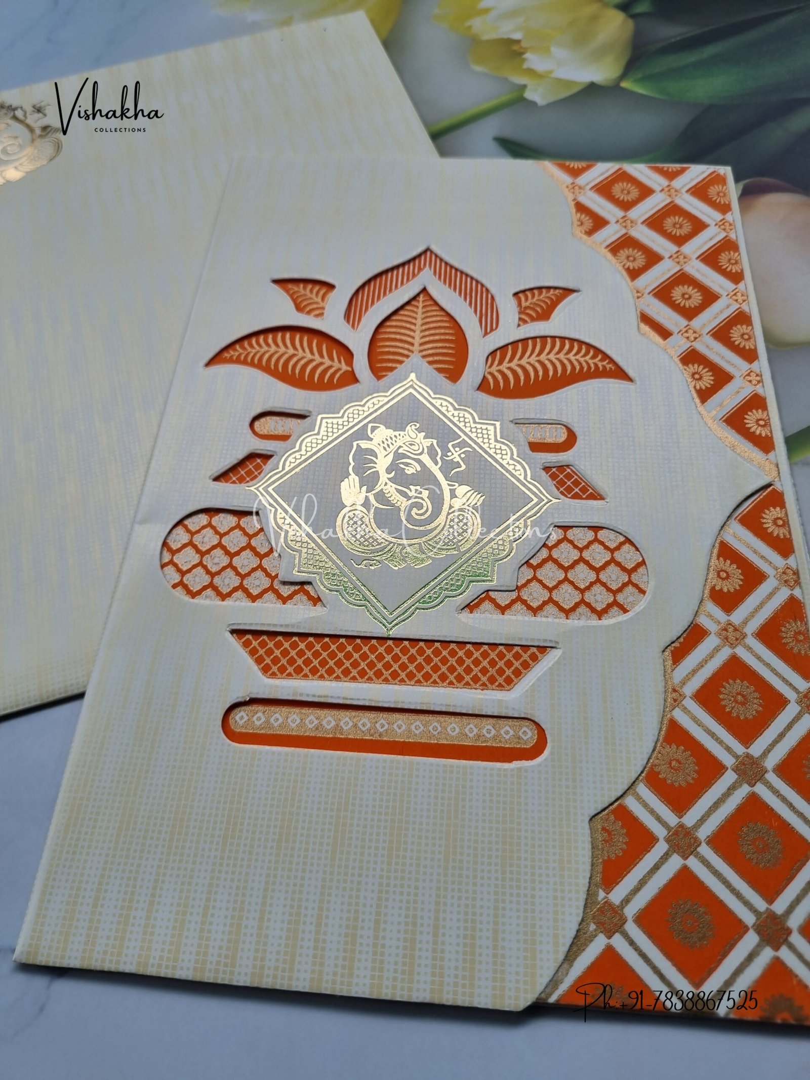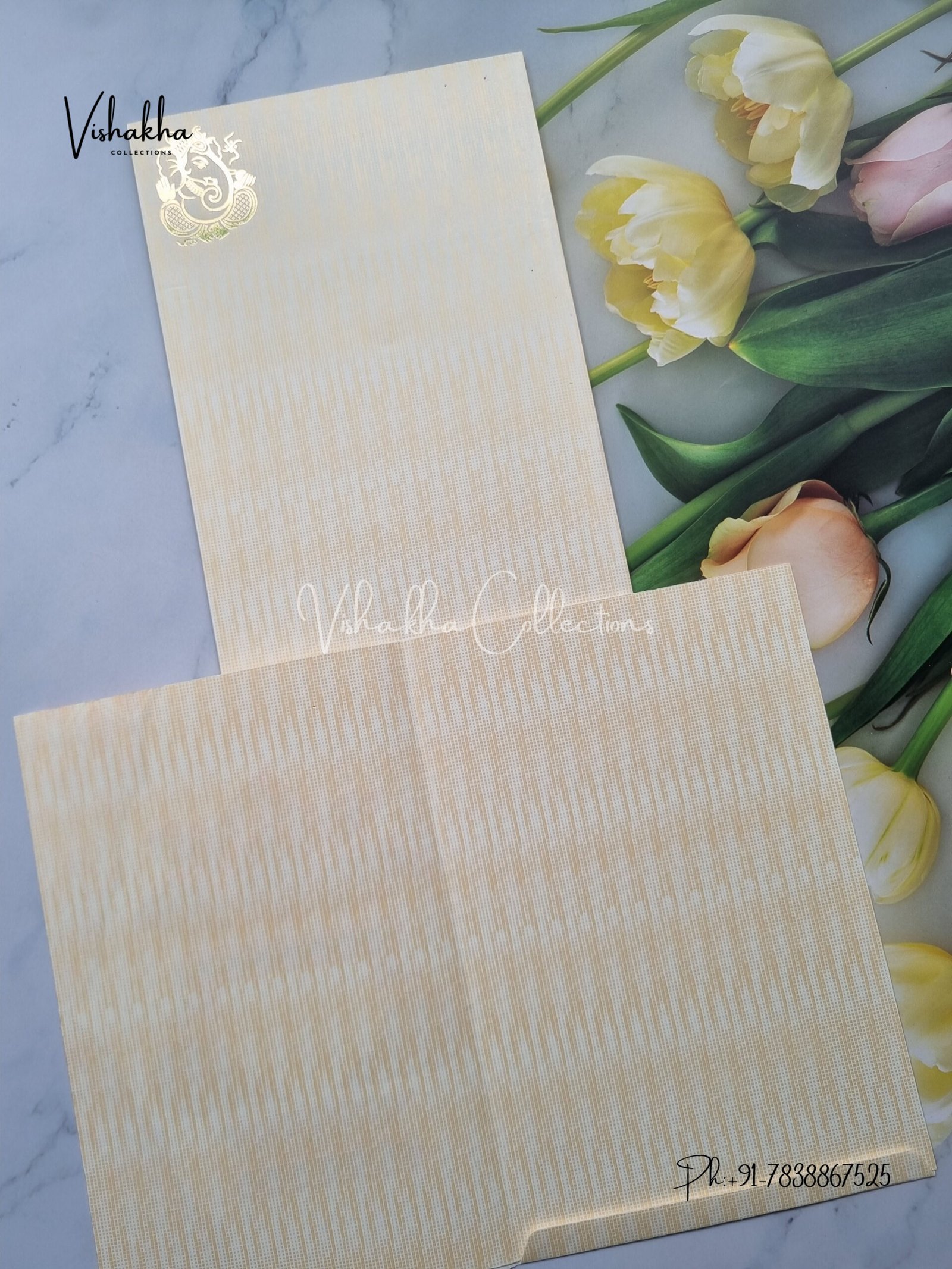Vishakha Collections presents you beautiful luxury wedding invitation cards with all latest designs and the latest variety. Its just not a wedding invitation card but a beautiful feeling of love and relationship it carries for you. Beautifully printed and packed with a bundle of love. if you like it, dont think again, just go for it.If you are worrying about the quality of the product, send your doubts to us. We are here to help you. If you want in wholesale or bulk, dont forget to contact us.