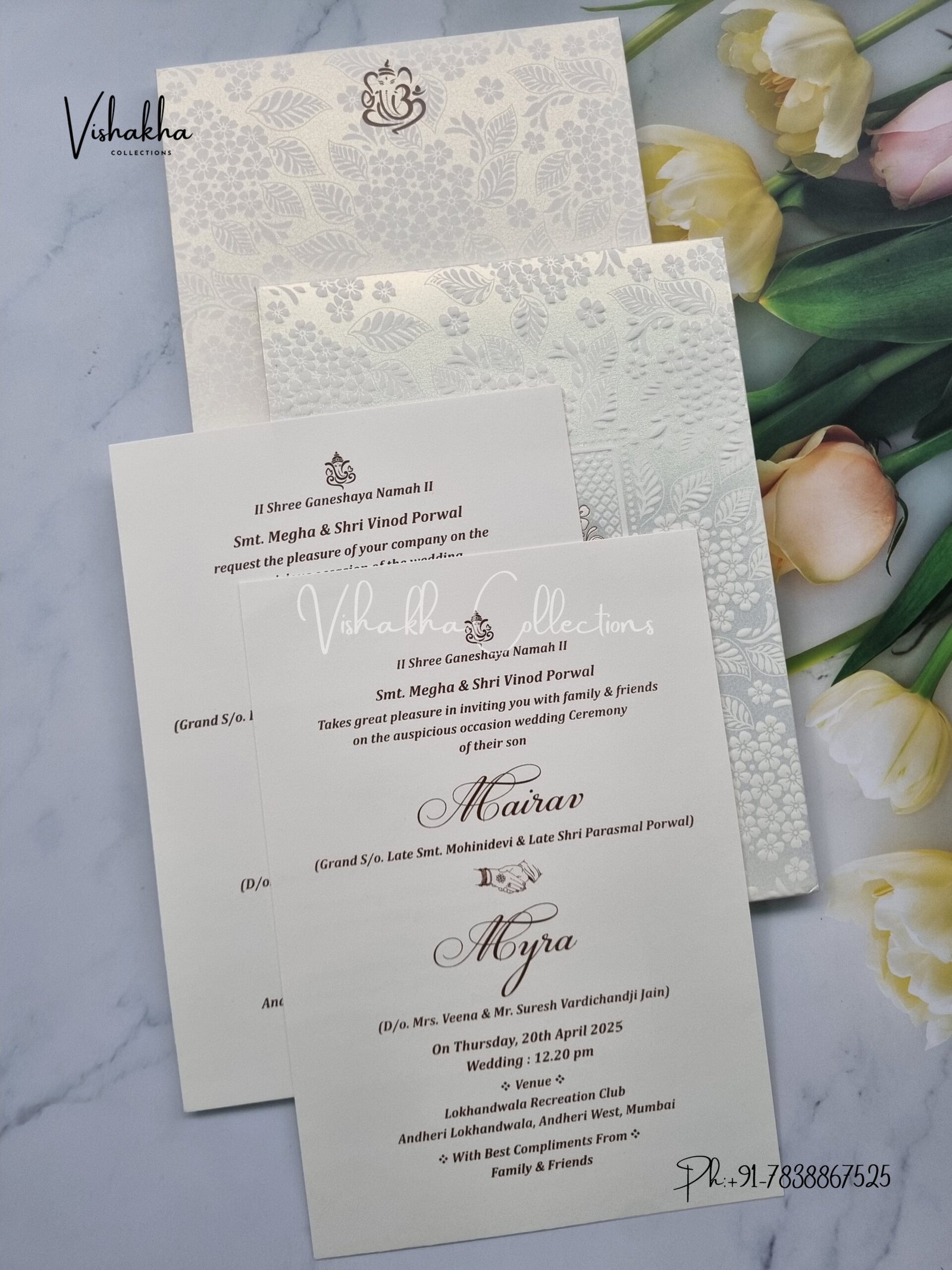 Vishakha Collections presents you beautiful luxury wedding invitation cards with all latest designs and the latest variety. Its just not a wedding invitation card but a beautiful feeling of love and relationship it carries for you. Beautifully printed and packed with a bundle of love. if you like it, dont think again, just go for it.If you are worrying about the quality of the product, send your doubts to us. We are here to help you. If you want in wholesale or bulk, dont forget to contact us.