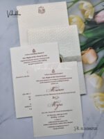 Be the first to review “Cream colour Textured White Padded card with acrylic name plate Wedding Invitation Card SK-3429”
