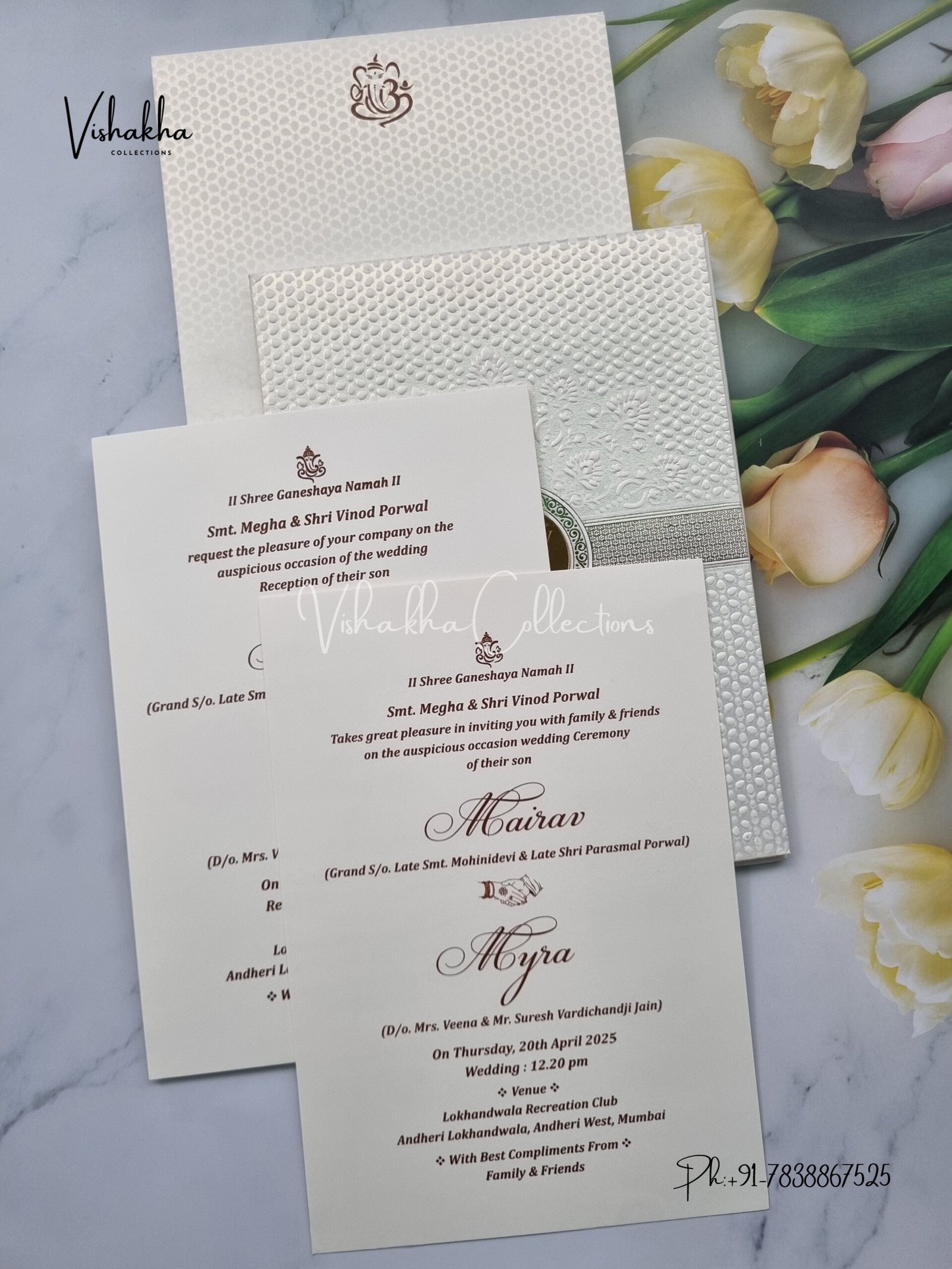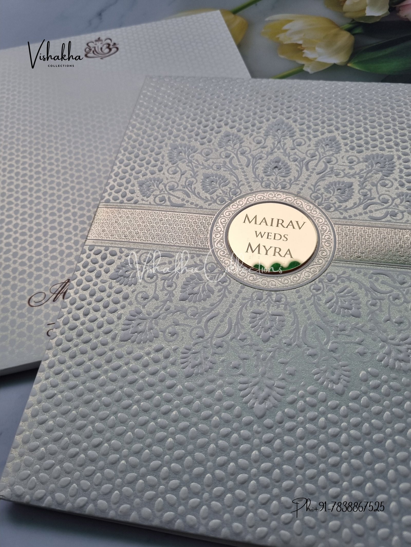 Vishakha Collections presents you beautiful luxury wedding invitation cards with all latest designs and the latest variety. Its just not a wedding invitation card but a beautiful feeling of love and relationship it carries for you. Beautifully printed and packed with a bundle of love. if you like it, dont think again, just go for it.If you are worrying about the quality of the product, send your doubts to us. We are here to help you. If you want in wholesale or bulk, dont forget to contact us.