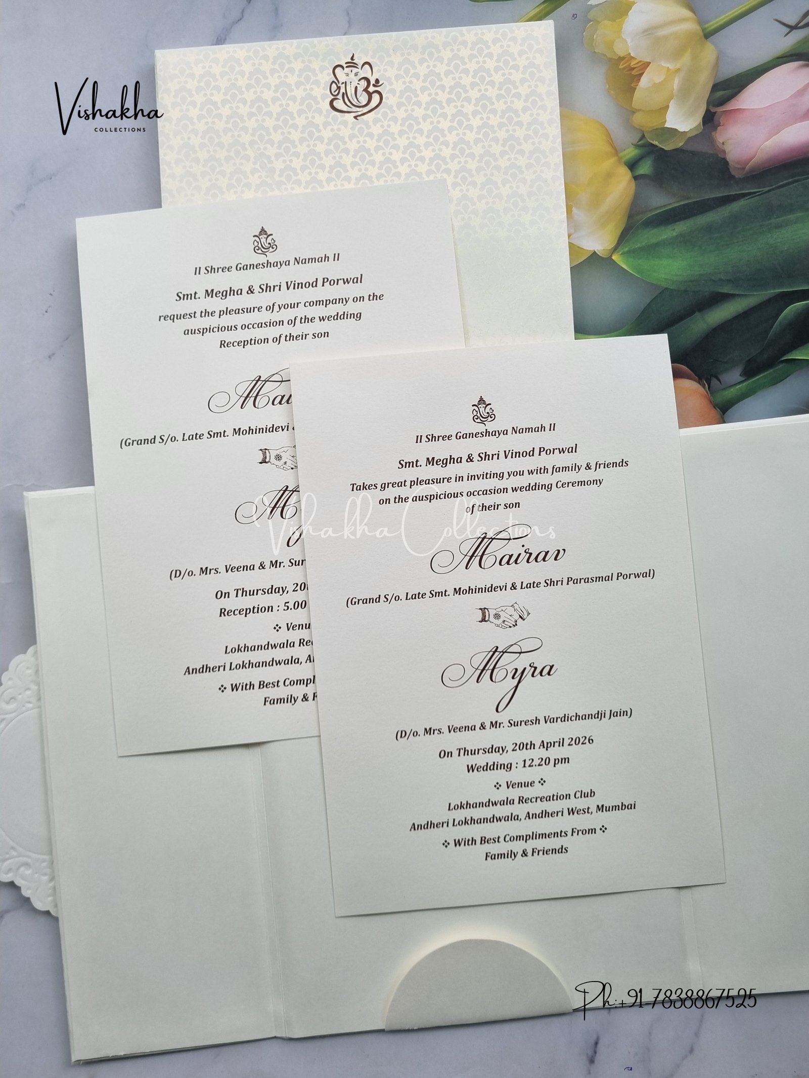 Semi Box Hindu Muslim Christian Sikh Padded white Colored invitation Cards SK-3432