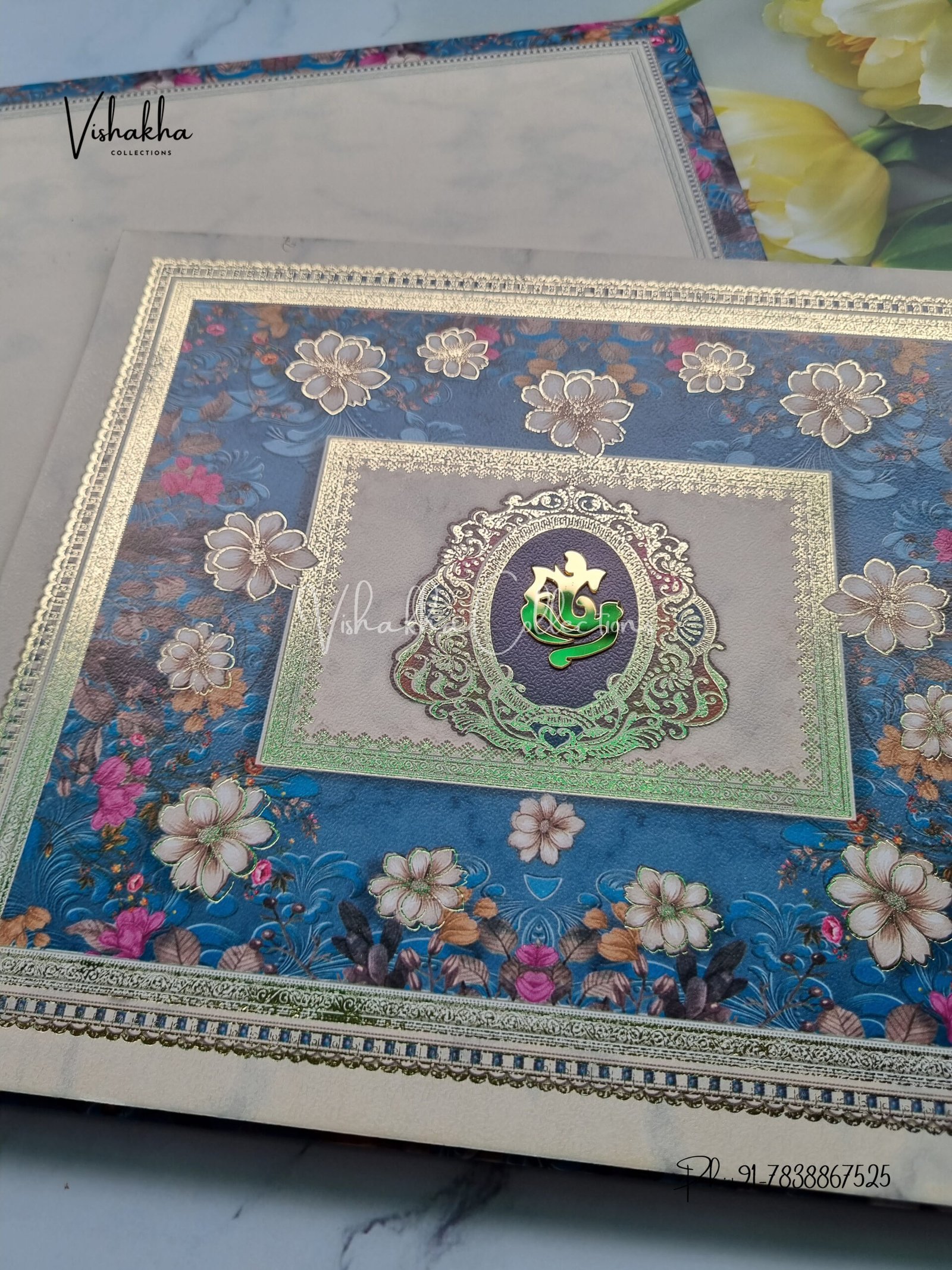 ₹42.00Dark blue flower print with three inserts Wedding Invitation Card