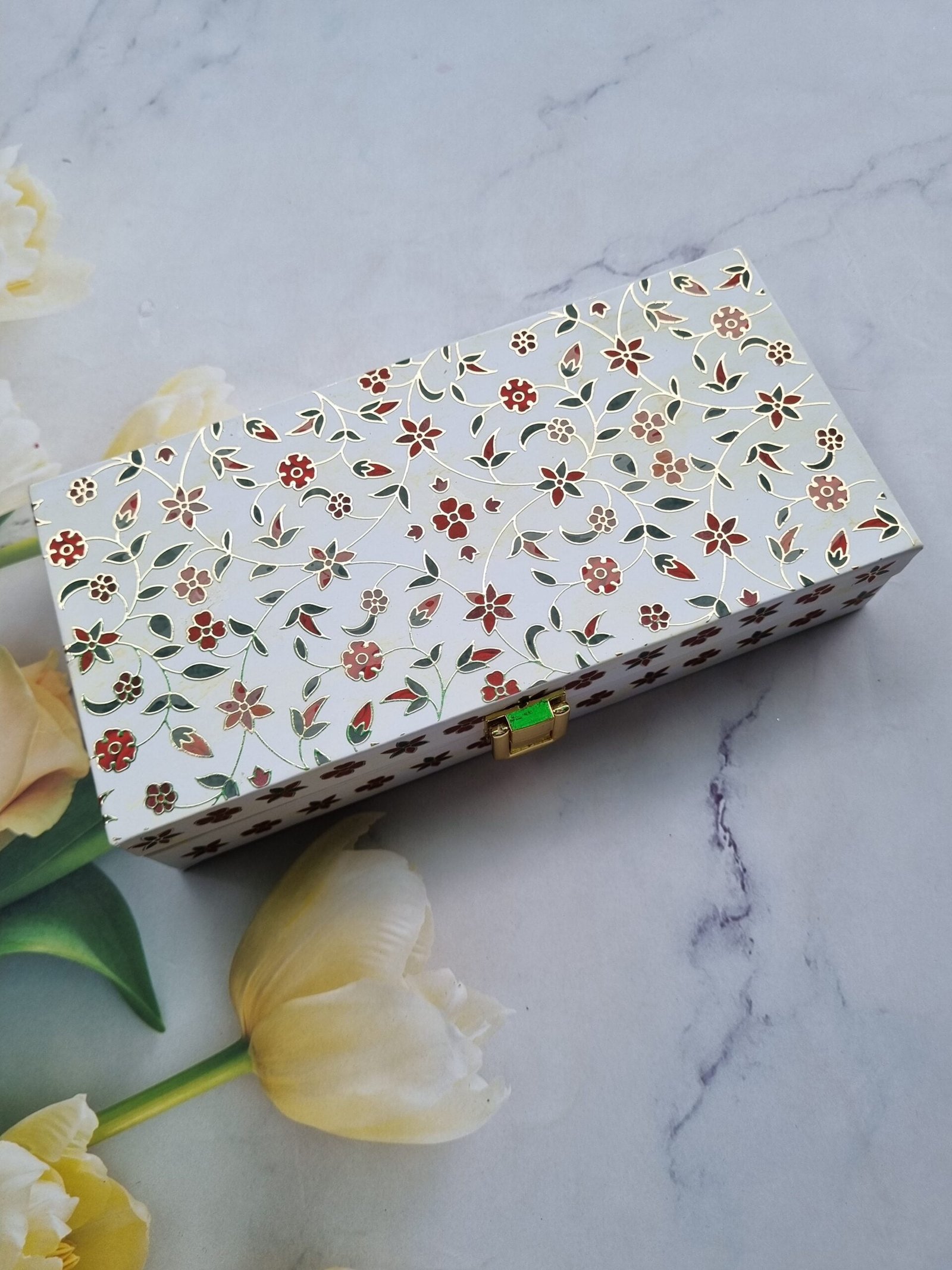 “Discover the perfect way to safeguard your finances and celebrate cherished moments with our exclusive money box, commonly referred to as a gaddi box or shagun box. Meticulously handcrafted with the utmost care and attention to detail, our money box not only provides a secure storage solution for your cash and valuables but also serves as a timeless piece of art.