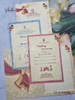 Vishakha Collections presents you beautiful luxury wedding invitation cards with all latest designs and the latest variety. Its just not a wedding invitation card but a beautiful feeling of love and relationship it carries for you. Beautifully printed and packed with a bundle of love. if you like it, dont think again, just go for it.If you are worrying about the quality of the product, send your doubts to us. We are here to help you. If you want in wholesale or bulk, dont forget to contact us.