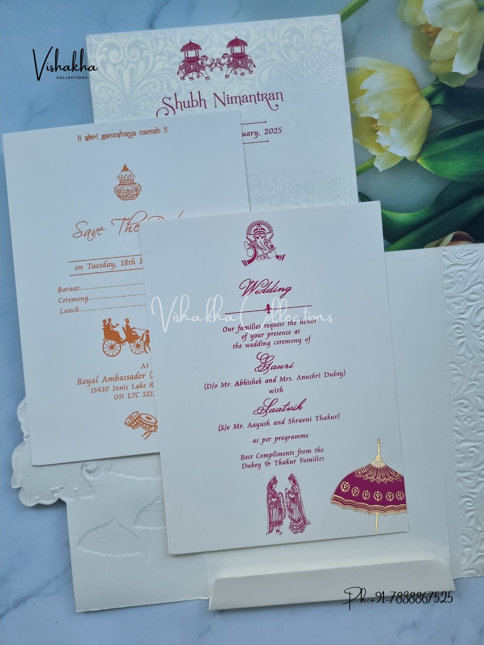 ₹28.00Semi Box Hathi Themed White And golden Color Hindu Wedding invitation Cards – CR-225