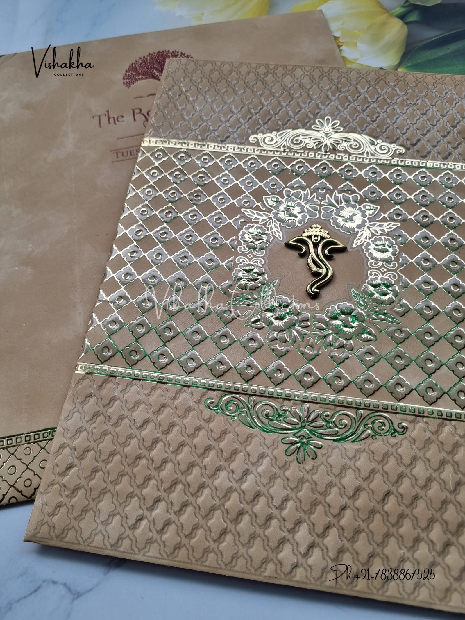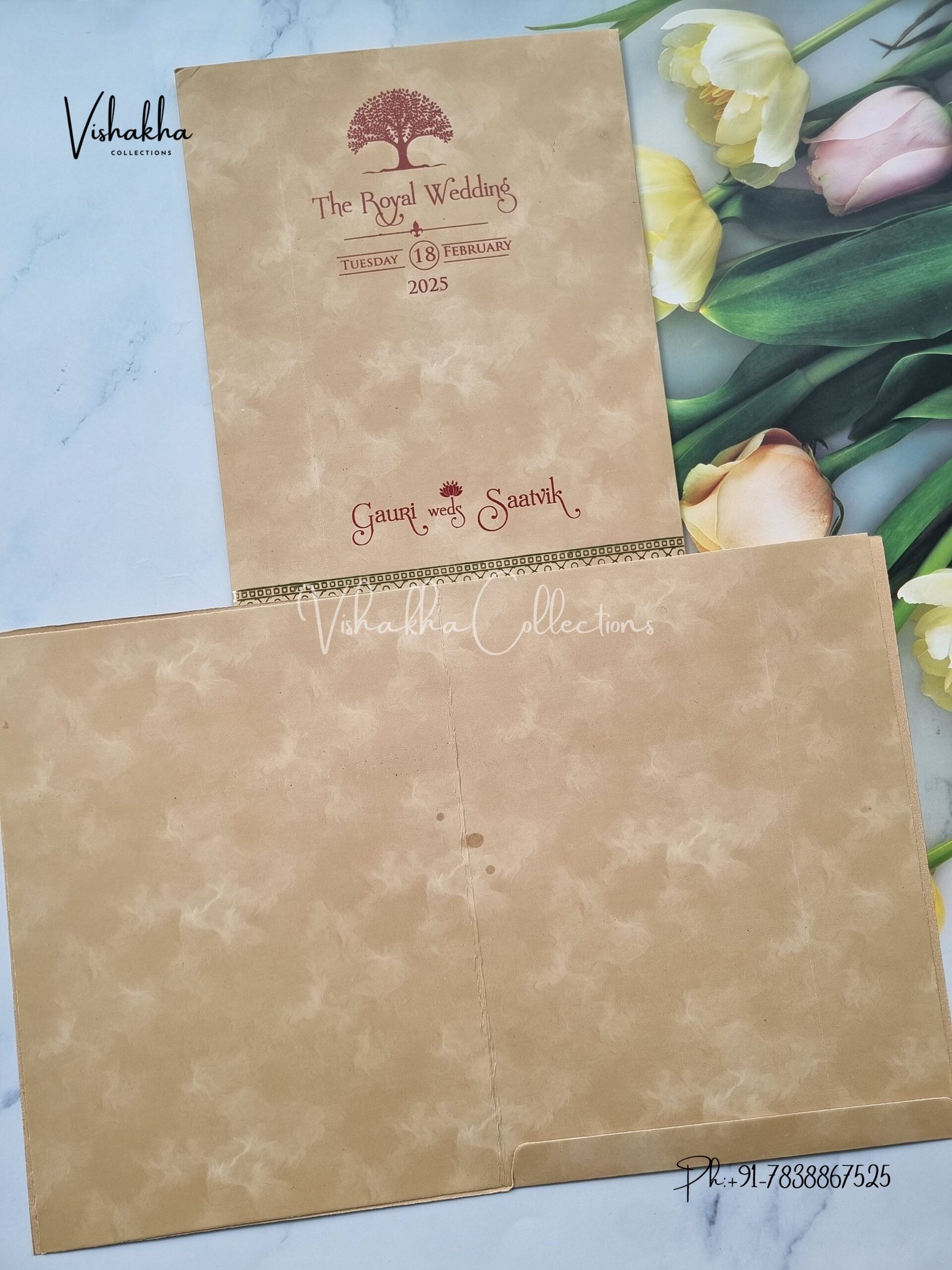Vishakha Collections presents you beautiful luxury wedding invitation cards with all latest designs and the latest variety. Its just not a wedding invitation card but a beautiful feeling of love and relationship it carries for you. Beautifully printed and packed with a bundle of love. if you like it, dont think again, just go for it.If you are worrying about the quality of the product, send your doubts to us. We are here to help you. If you want in wholesale or bulk, dont forget to contact us.