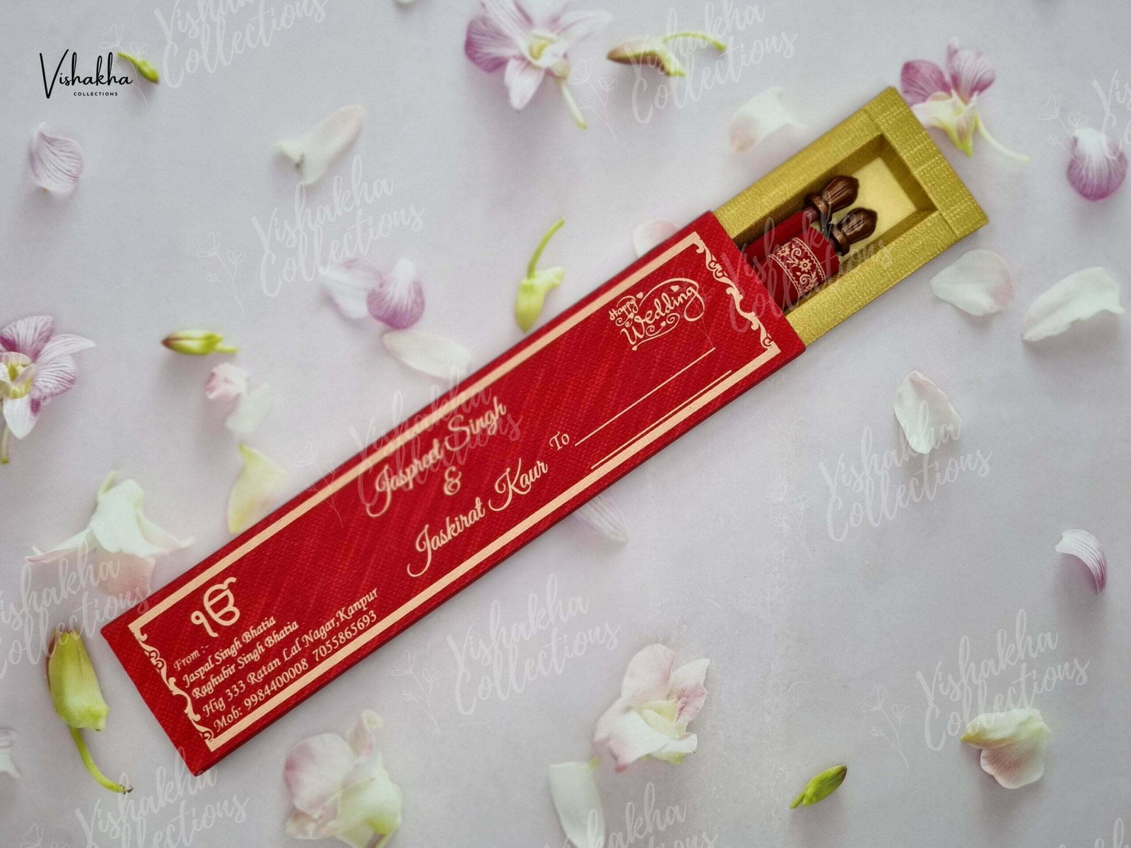 Vishakha Collections presents you beautiful luxury wedding invitation cards with all latest designs and the latest variety. Its just not a wedding invitation card but a beautiful feeling of love and relationship it carries for you. Beautifully printed and packed with a bundle of love. if you like it, dont think again, just go for it.If you are worrying about the quality of the product, send your doubts to us. We are here to help you. If you want in wholesale or bulk, dont forget to contact us.