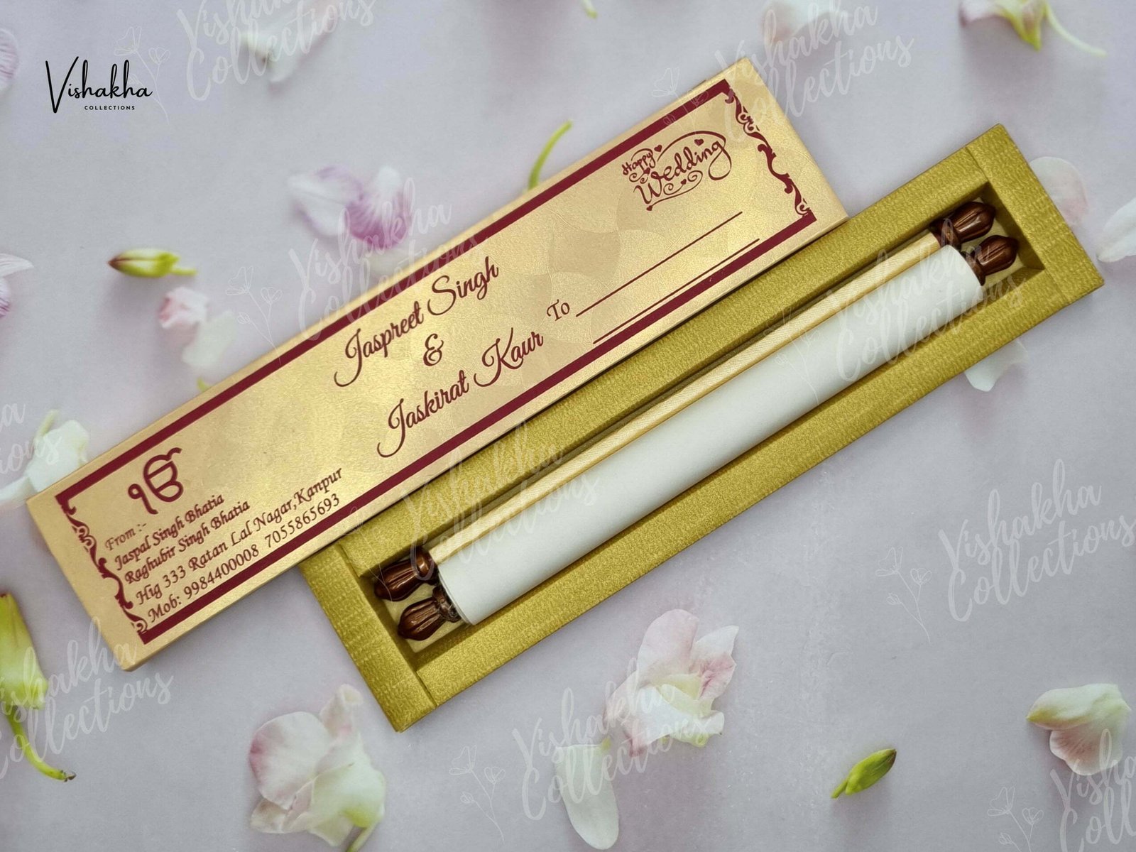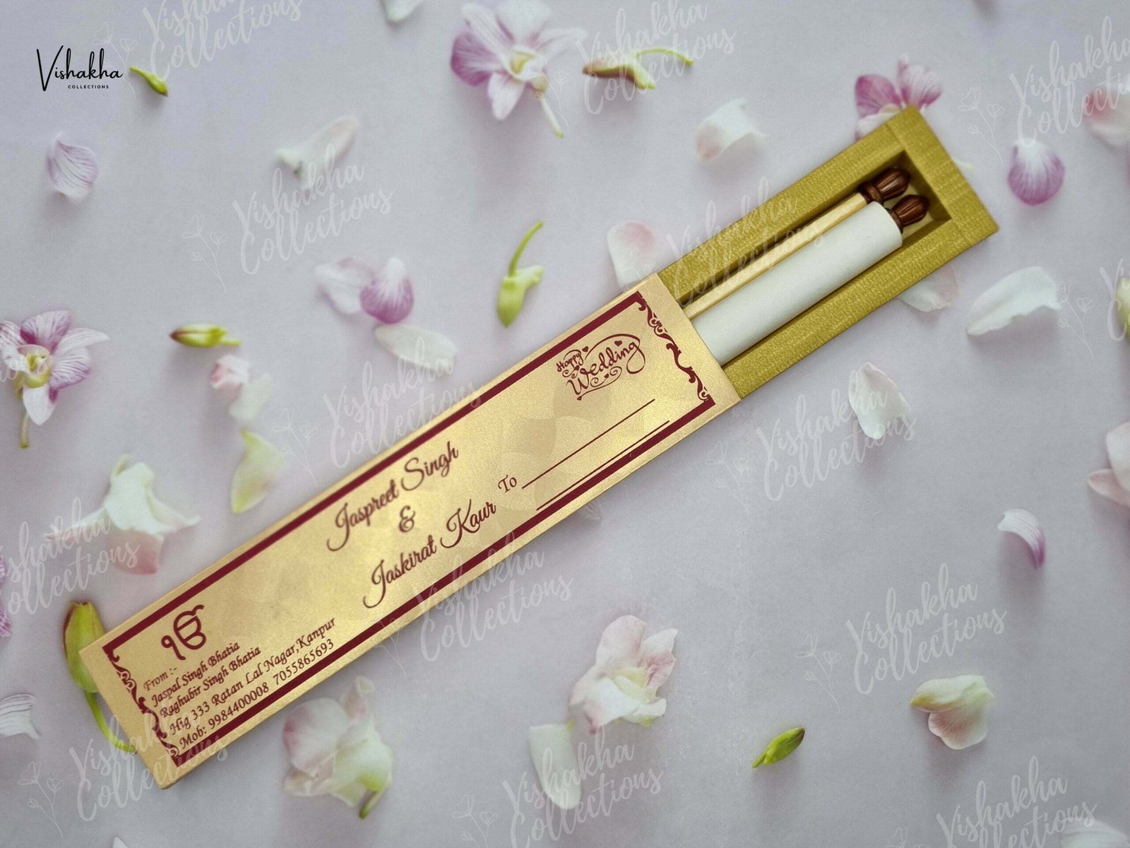 Vishakha Collections presents you beautiful luxury wedding invitation cards with all latest designs and the latest variety. Its just not a wedding invitation card but a beautiful feeling of love and relationship it carries for you. Beautifully printed and packed with a bundle of love. if you like it, dont think again, just go for it.If you are worrying about the quality of the product, send your doubts to us. We are here to help you. If you want in wholesale or bulk, dont forget to contact us.