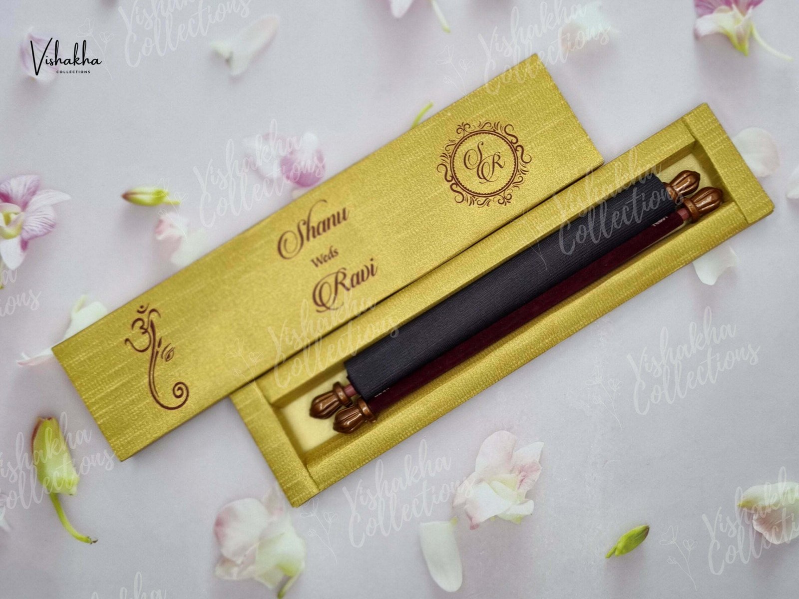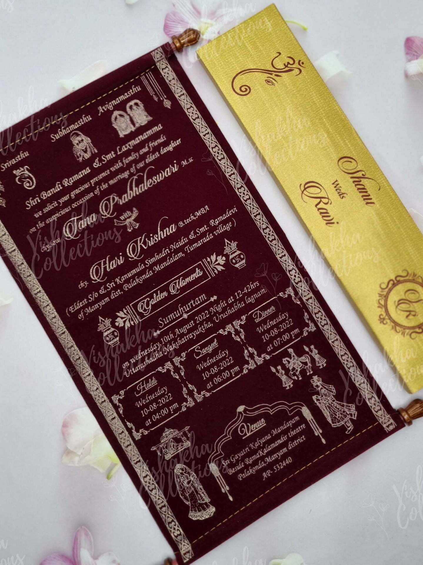 Vishakha Collections presents you beautiful luxury wedding invitation cards with all latest designs and the latest variety. Its just not a wedding invitation card but a beautiful feeling of love and relationship it carries for you. Beautifully printed and packed with a bundle of love. if you like it, dont think again, just go for it.If you are worrying about the quality of the product, send your doubts to us. We are here to help you. If you want in wholesale or bulk, dont forget to contact us.