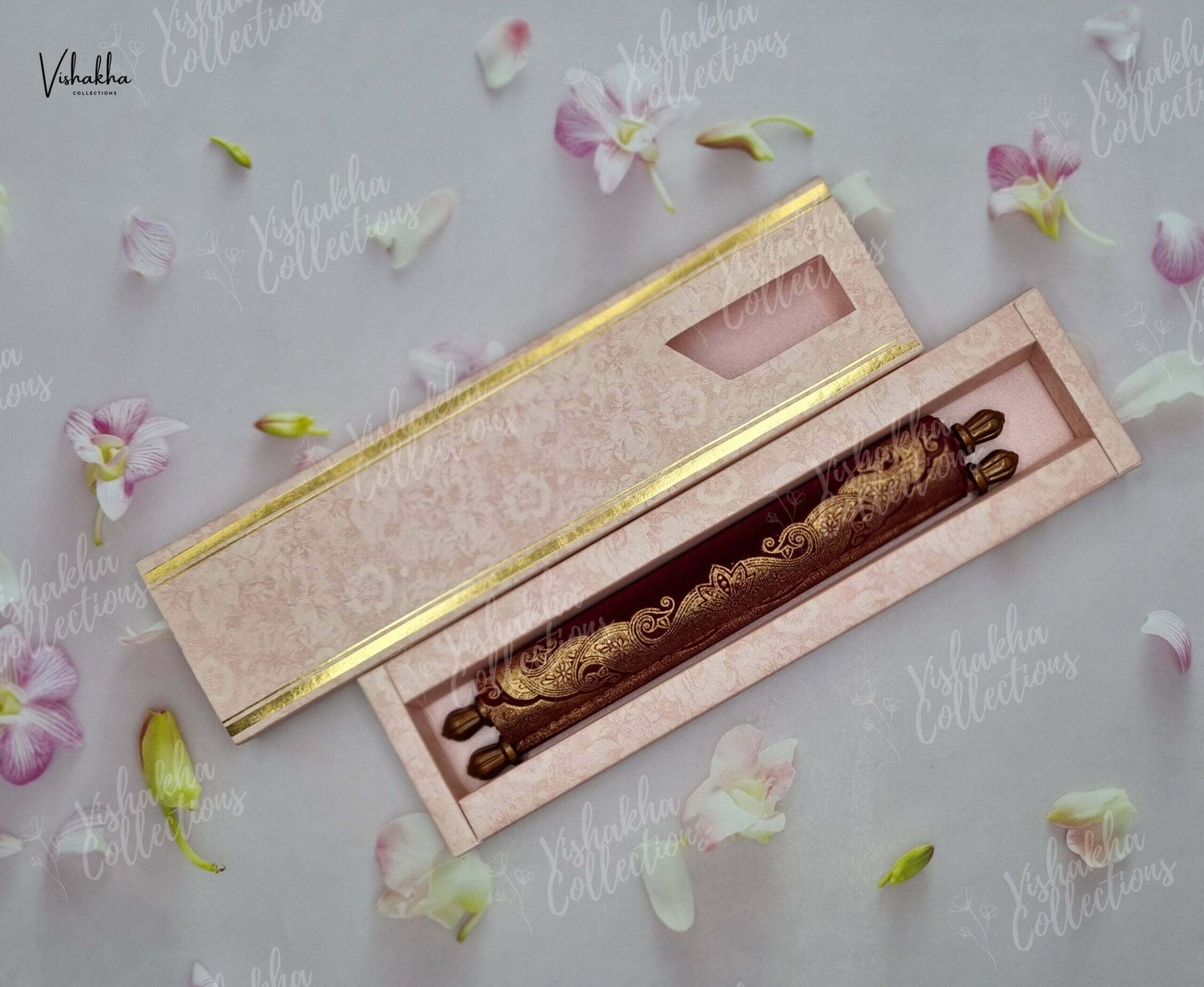 Vishakha Collections presents you beautiful luxury wedding invitation cards with all latest designs and the latest variety. Its just not a wedding invitation card but a beautiful feeling of love and relationship it carries for you. Beautifully printed and packed with a bundle of love. if you like it, dont think again, just go for it.If you are worrying about the quality of the product, send your doubts to us. We are here to help you. If you want in wholesale or bulk, dont forget to contact us.