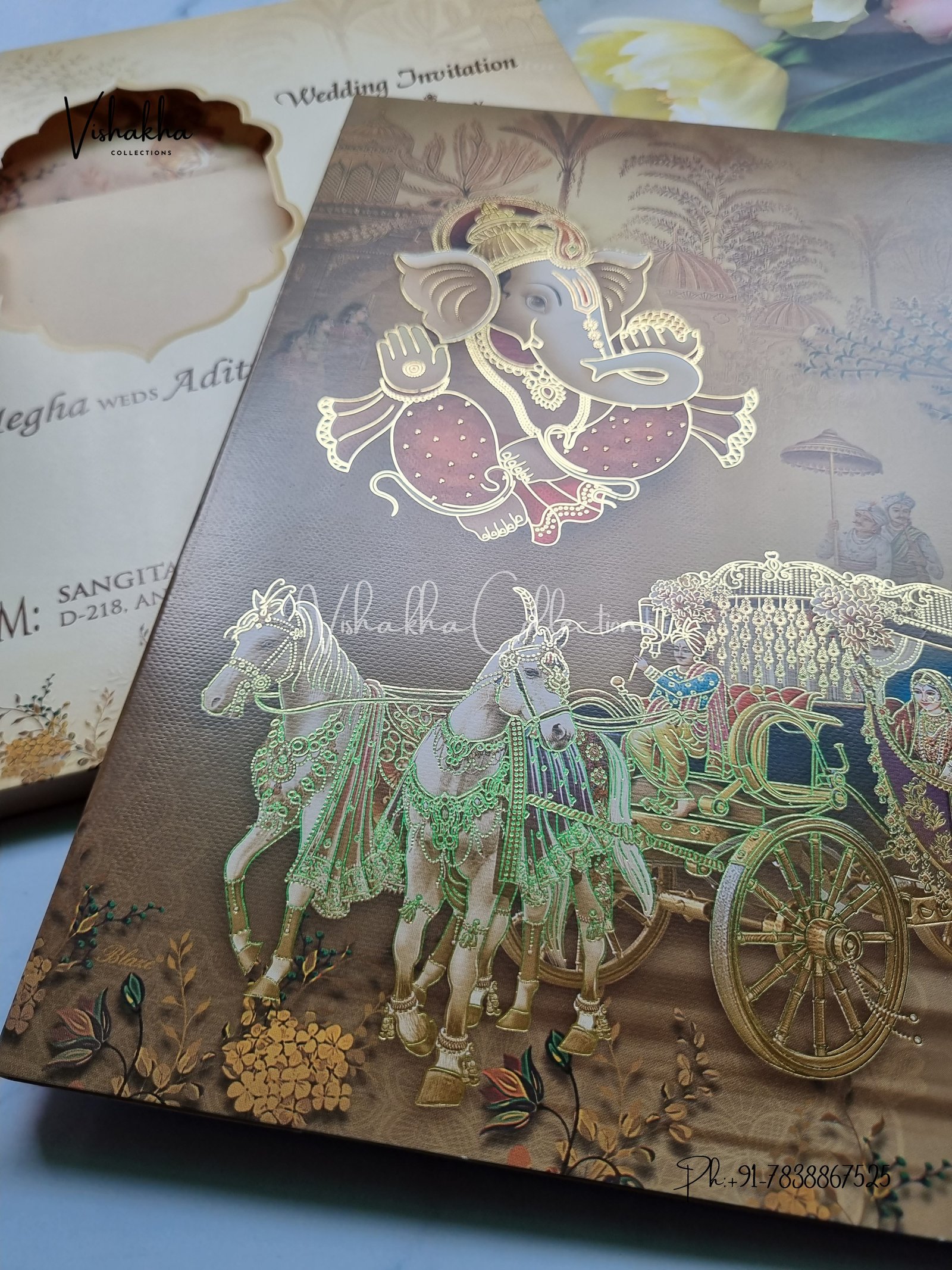 Barat Semi Box Hathi Ganesh Ji Dulah Dulhan Hindu invitation Cards EJ-4112