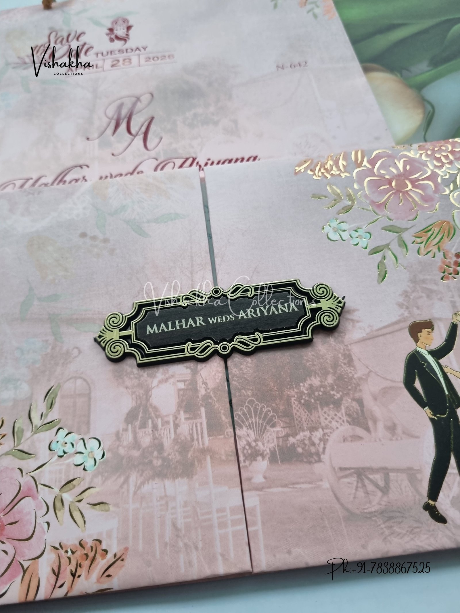 Vishakha Collections presents you beautiful luxury wedding invitation cards with all latest designs and the latest variety. Its just not a wedding invitation card but a beautiful feeling of love and relationship it carries for you. Beautifully printed and packed with a bundle of love. if you like it, dont think again, just go for it.If you are worrying about the quality of the product, send your doubts to us. We are here to help you. If you want in wholesale or bulk, dont forget to contact us.