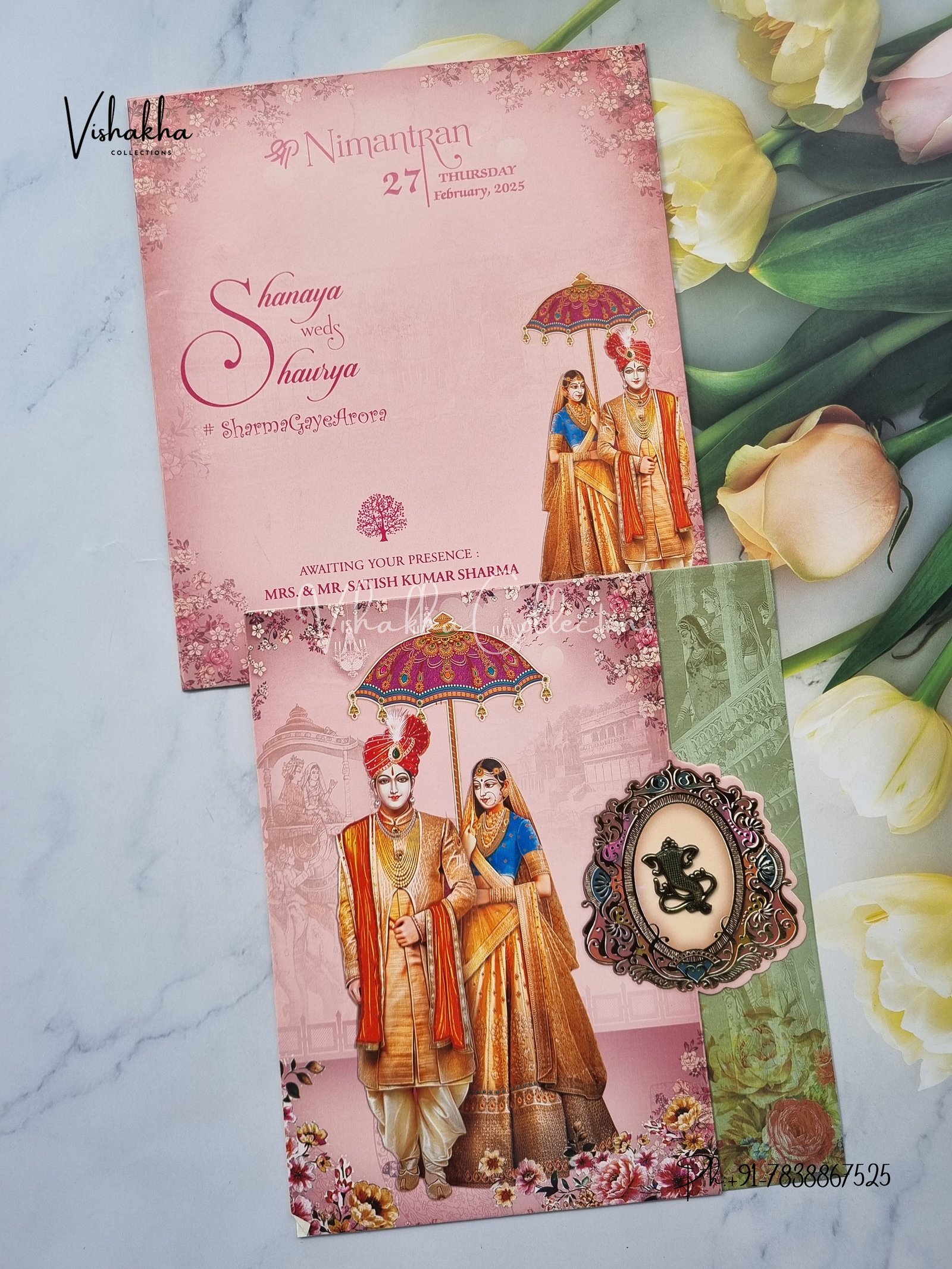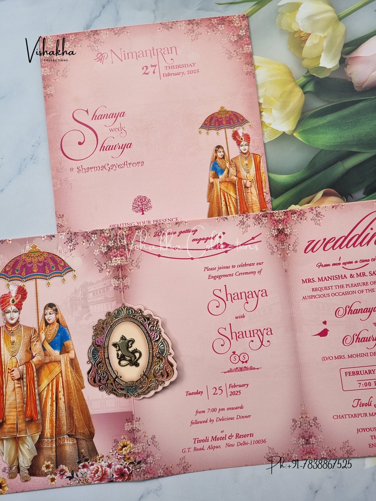 Vishakha Collections presents you beautiful luxury wedding invitation cards with all latest designs and the latest variety. Its just not a wedding invitation card but a beautiful feeling of love and relationship it carries for you. Beautifully printed and packed with a bundle of love. if you like it, dont think again, just go for it.If you are worrying about the quality of the product, send your doubts to us. We are here to help you. If you want in wholesale or bulk, dont forget to contact us.
