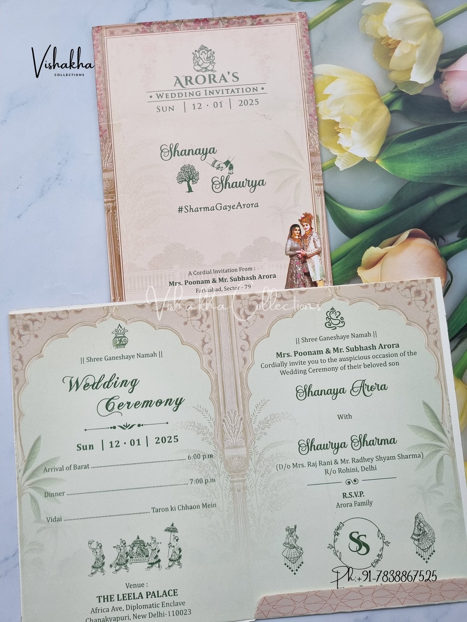 Vishakha Collections presents you beautiful luxury wedding invitation cards with all latest designs and the latest variety. Its just not a wedding invitation card but a beautiful feeling of love and relationship it carries for you. Beautifully printed and packed with a bundle of love. if you like it, dont think again, just go for it.If you are worrying about the quality of the product, send your doubts to us. We are here to help you. If you want in wholesale or bulk, dont forget to contact us.