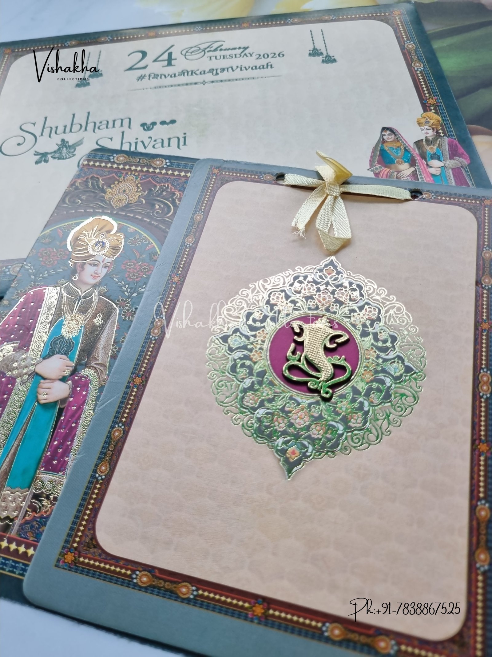 Vishakha Collections presents you beautiful luxury wedding invitation cards with all latest designs and the latest variety. Its just not a wedding invitation card but a beautiful feeling of love and relationship it carries for you. Beautifully printed and packed with a bundle of love. if you like it, dont think again, just go for it.If you are worrying about the quality of the product, send your doubts to us. We are here to help you. If you want in wholesale or bulk, dont forget to contact us.
