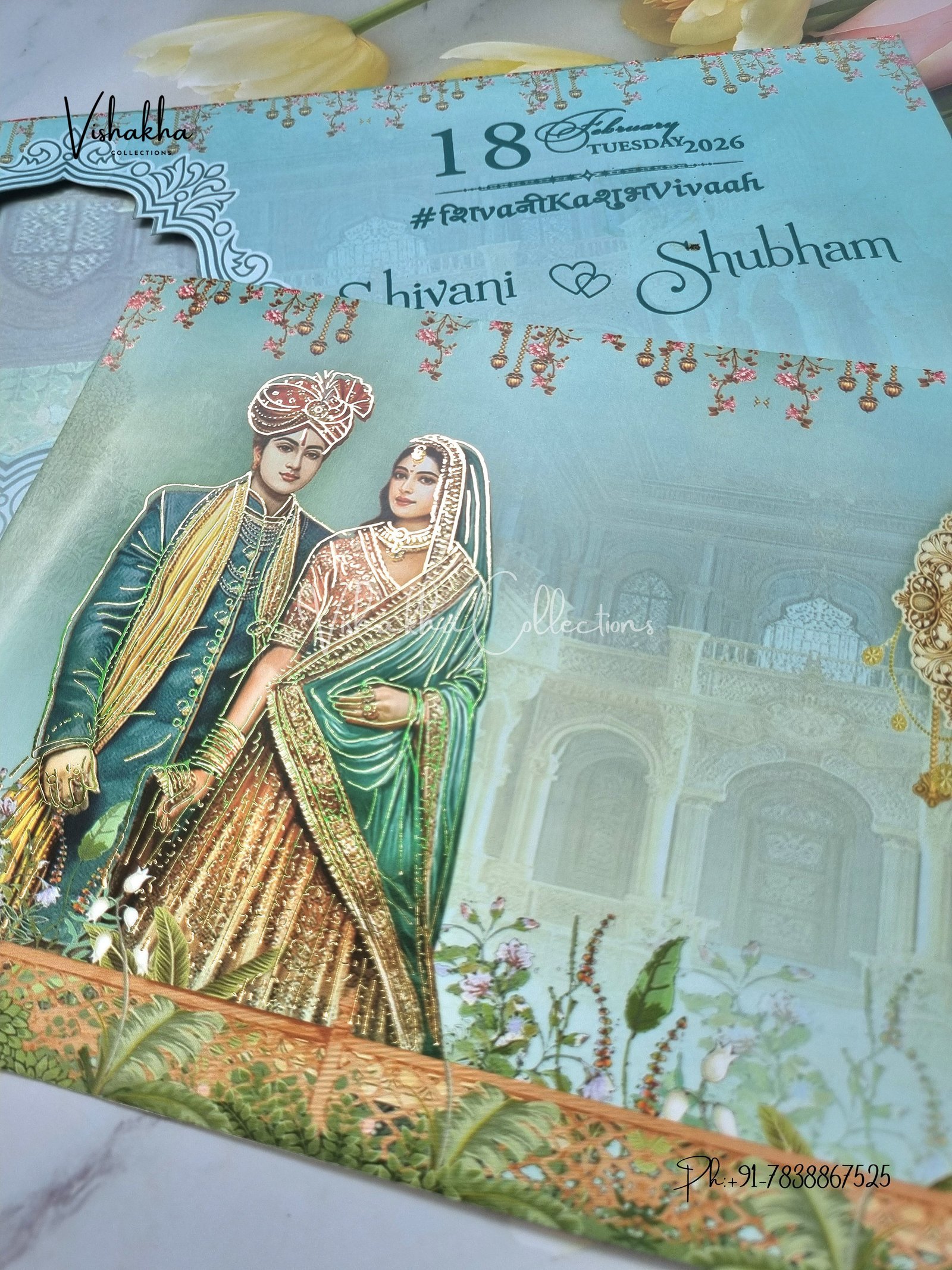 Vishakha Collections presents you beautiful luxury wedding invitation cards with all latest designs and the latest variety. Its just not a wedding invitation card but a beautiful feeling of love and relationship it carries for you. Beautifully printed and packed with a bundle of love. if you like it, dont think again, just go for it.If you are worrying about the quality of the product, send your doubts to us. We are here to help you. If you want in wholesale or bulk, dont forget to contact us.