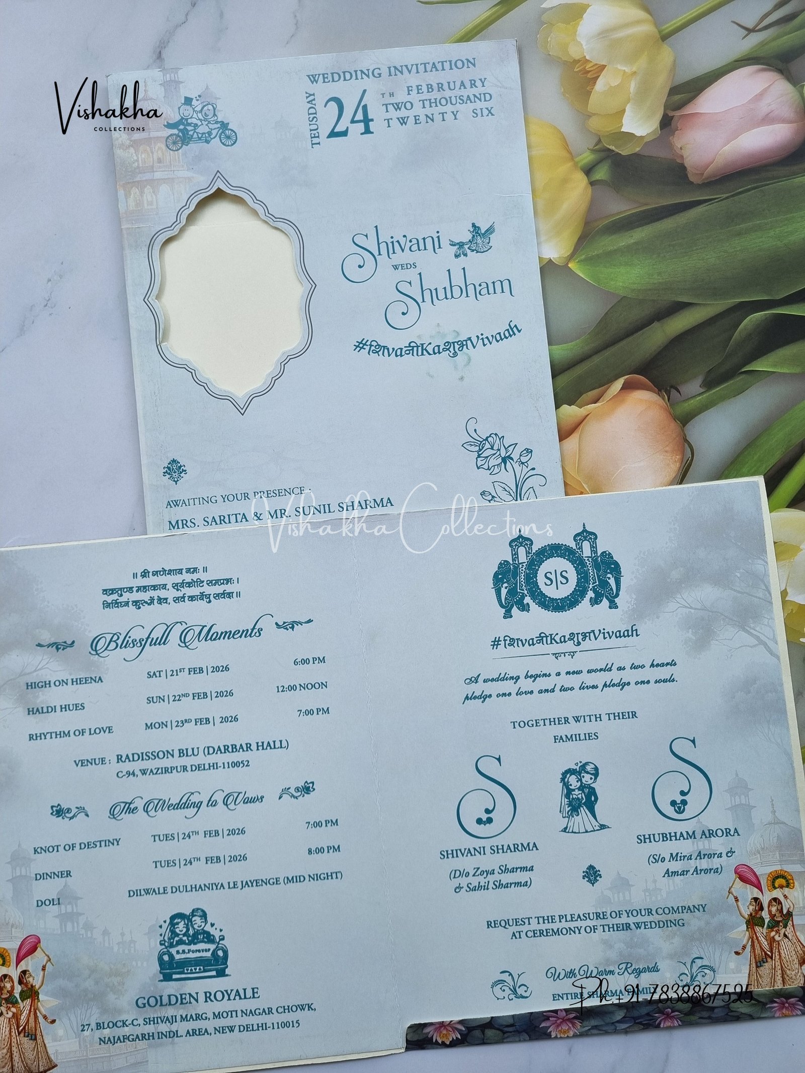 Vishakha Collections presents you beautiful luxury wedding invitation cards with all latest designs and the latest variety. Its just not a wedding invitation card but a beautiful feeling of love and relationship it carries for you. Beautifully printed and packed with a bundle of love. if you like it, dont think again, just go for it.If you are worrying about the quality of the product, send your doubts to us. We are here to help you. If you want in wholesale or bulk, dont forget to contact us.