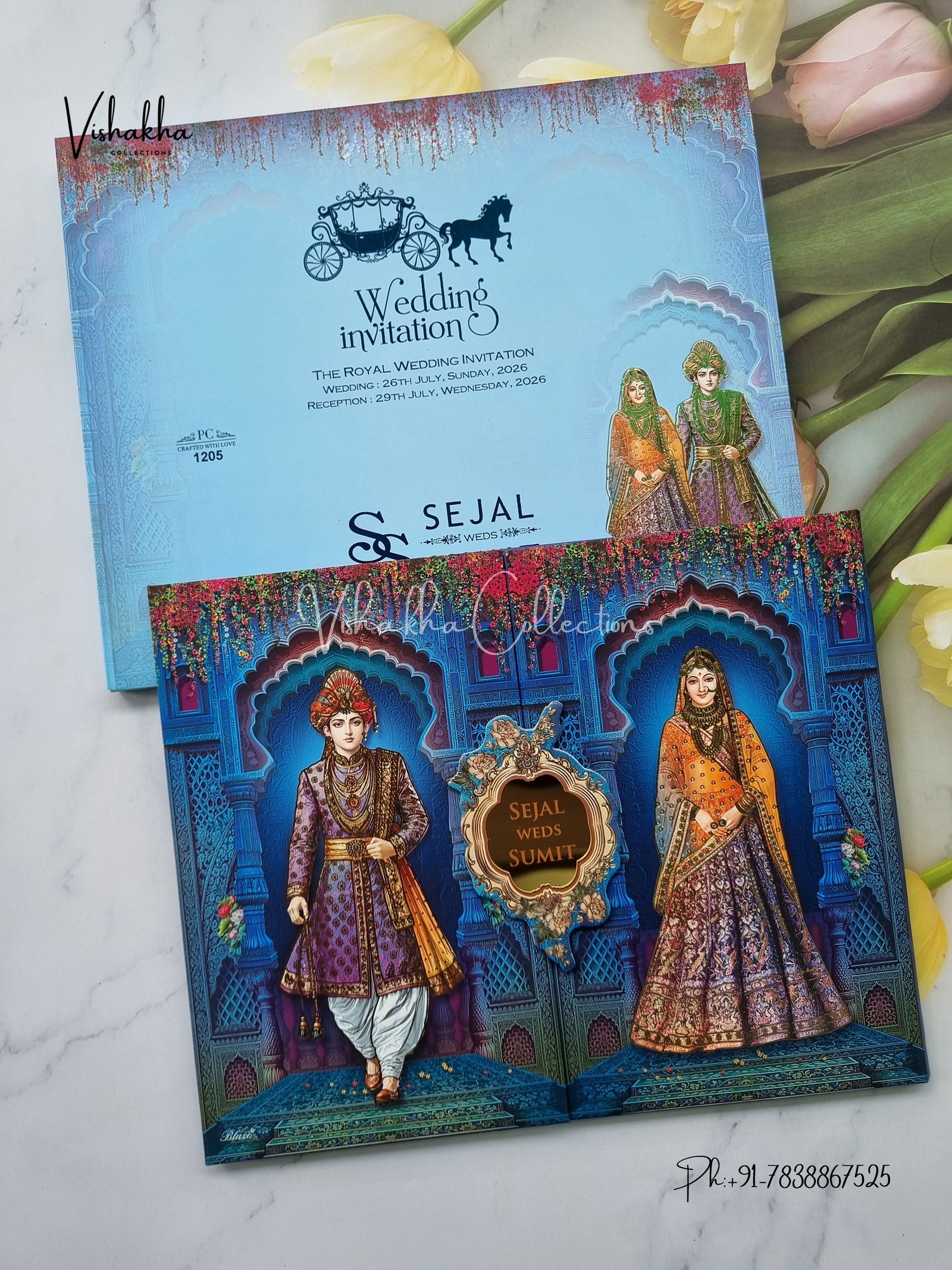 Vishakha Collections presents you beautiful luxury wedding invitation cards with all latest designs and the latest variety. Its just not a wedding invitation card but a beautiful feeling of love and relationship it carries for you. Beautifully printed and packed with a bundle of love. if you like it, dont think again, just go for it.If you are worrying about the quality of the product, send your doubts to us. We are here to help you. If you want in wholesale or bulk, dont forget to contact us.