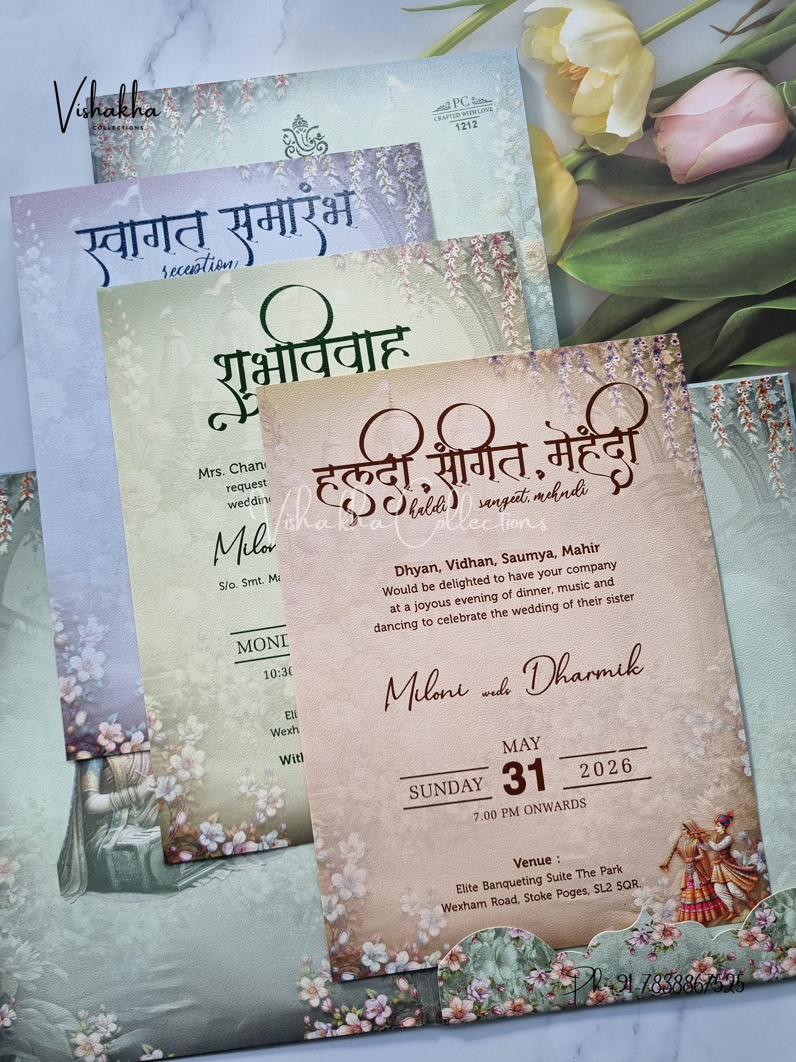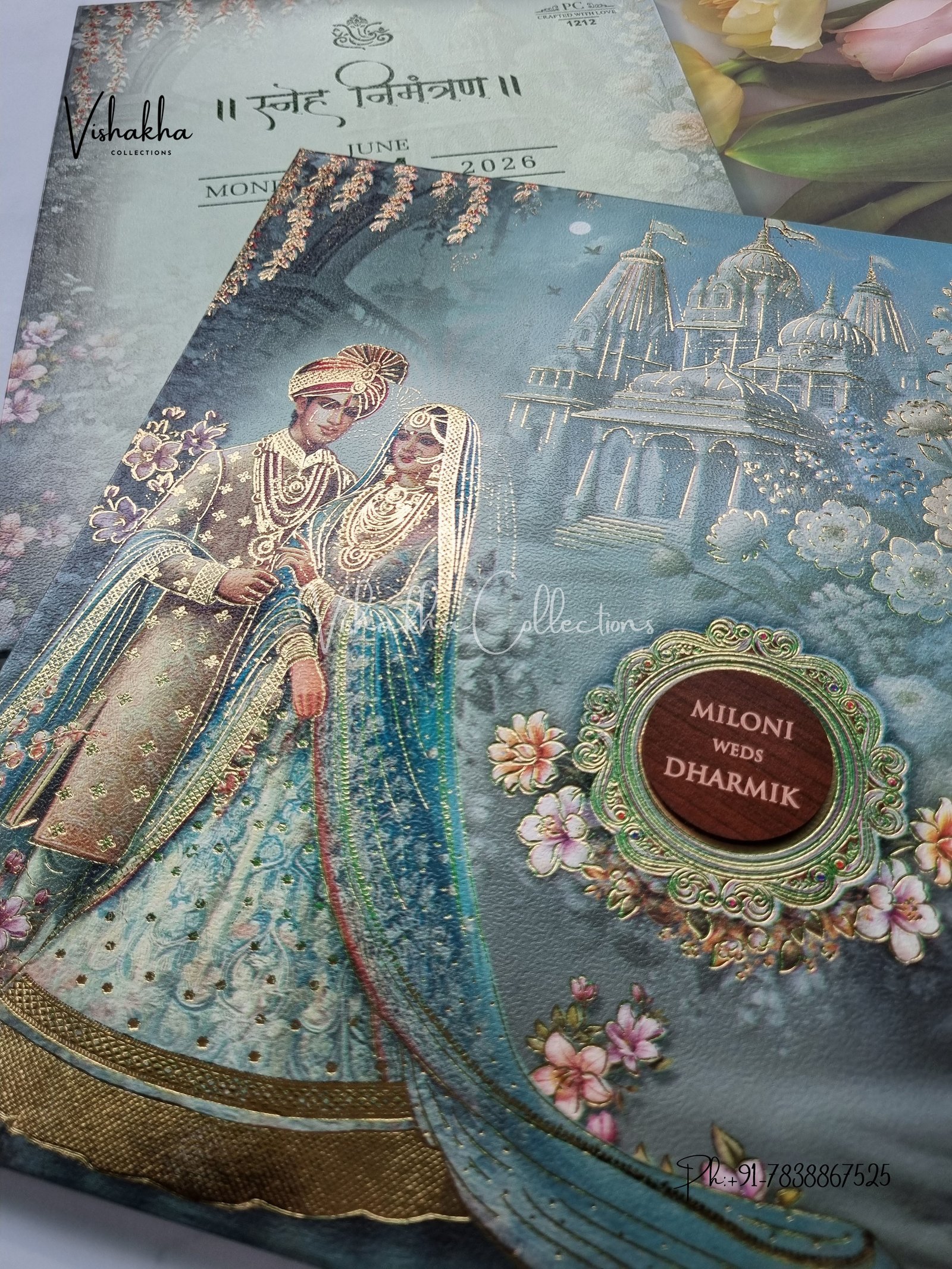 Vishakha Collections presents you beautiful luxury wedding invitation cards with all latest designs and the latest variety. Its just not a wedding invitation card but a beautiful feeling of love and relationship it carries for you. Beautifully printed and packed with a bundle of love. if you like it, dont think again, just go for it.If you are worrying about the quality of the product, send your doubts to us. We are here to help you. If you want in wholesale or bulk, dont forget to contact us.