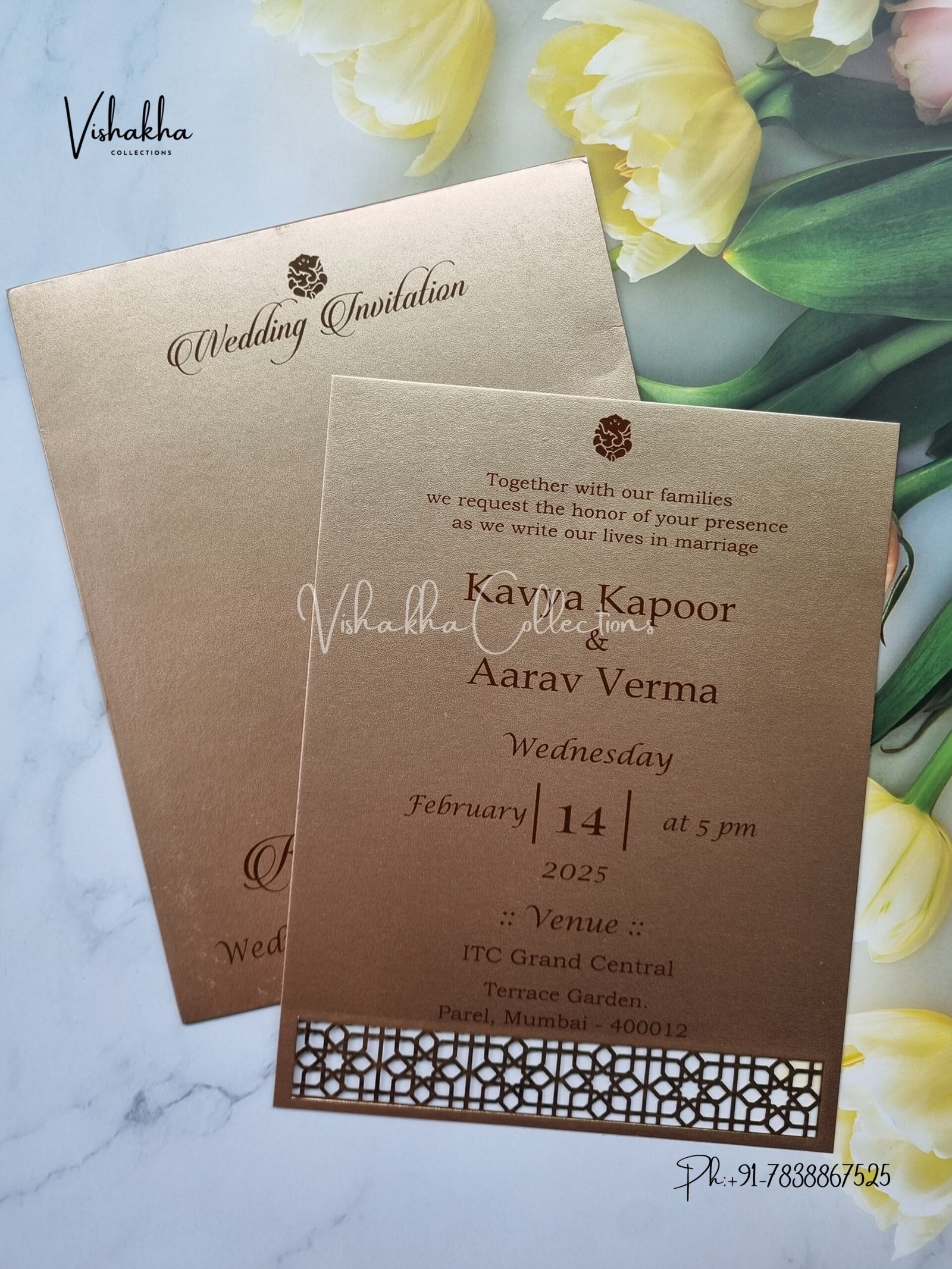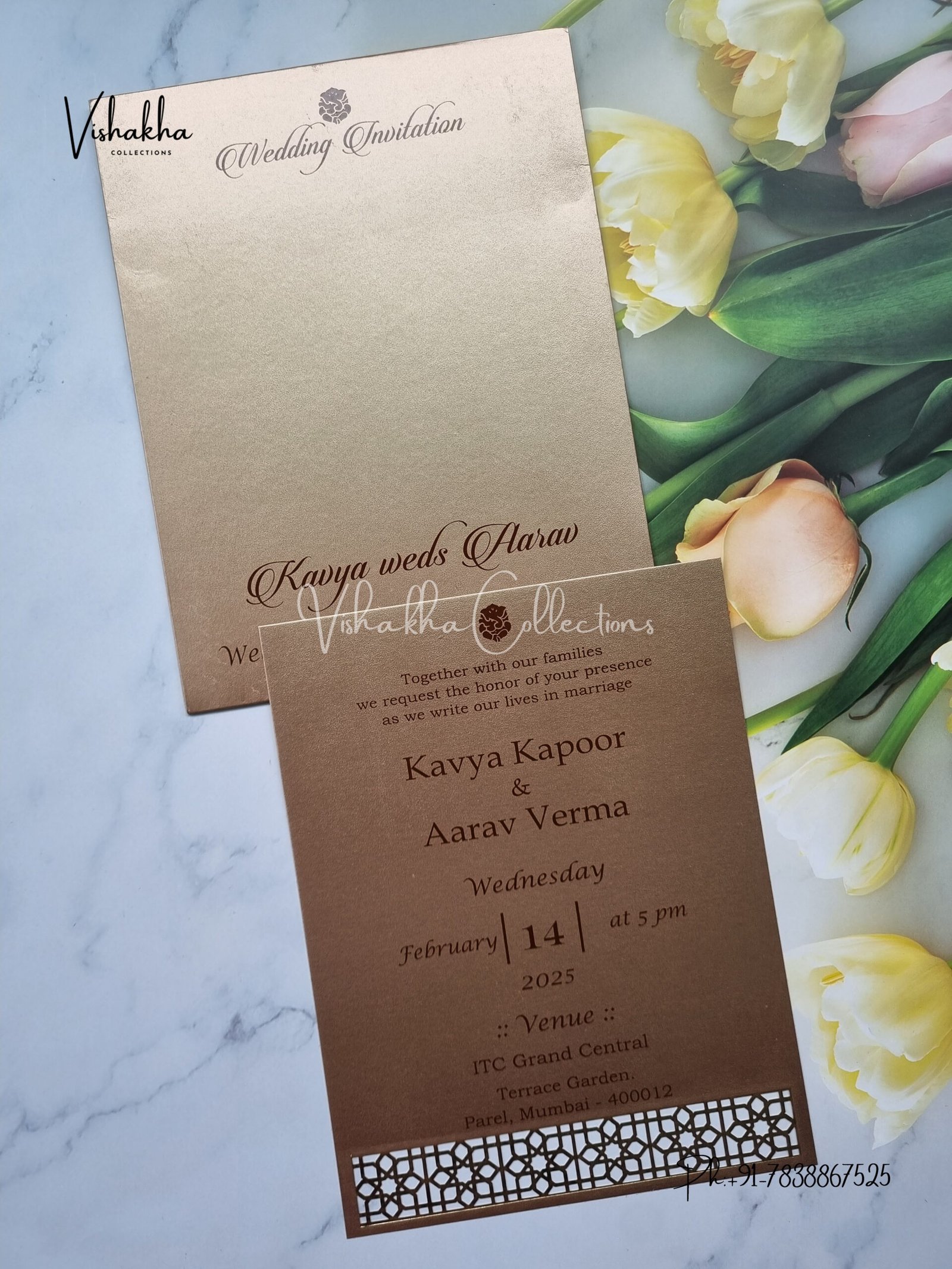 Dull Gold Single Insert Laser Cut with Gold Border Hindu Muslim Sikh Christian