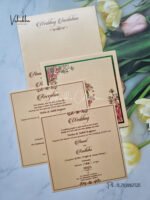Vishakha Collections presents you beautiful luxury wedding invitation cards with all latest designs and the latest variety. Its just not a wedding invitation card but a beautiful feeling of love and relationship it carries for you. Beautifully printed and packed with a bundle of love. if you like it, dont think again, just go for it.If you are worrying about the quality of the product, send your doubts to us. We are here to help you. If you want in wholesale or bulk, dont forget to contact us.