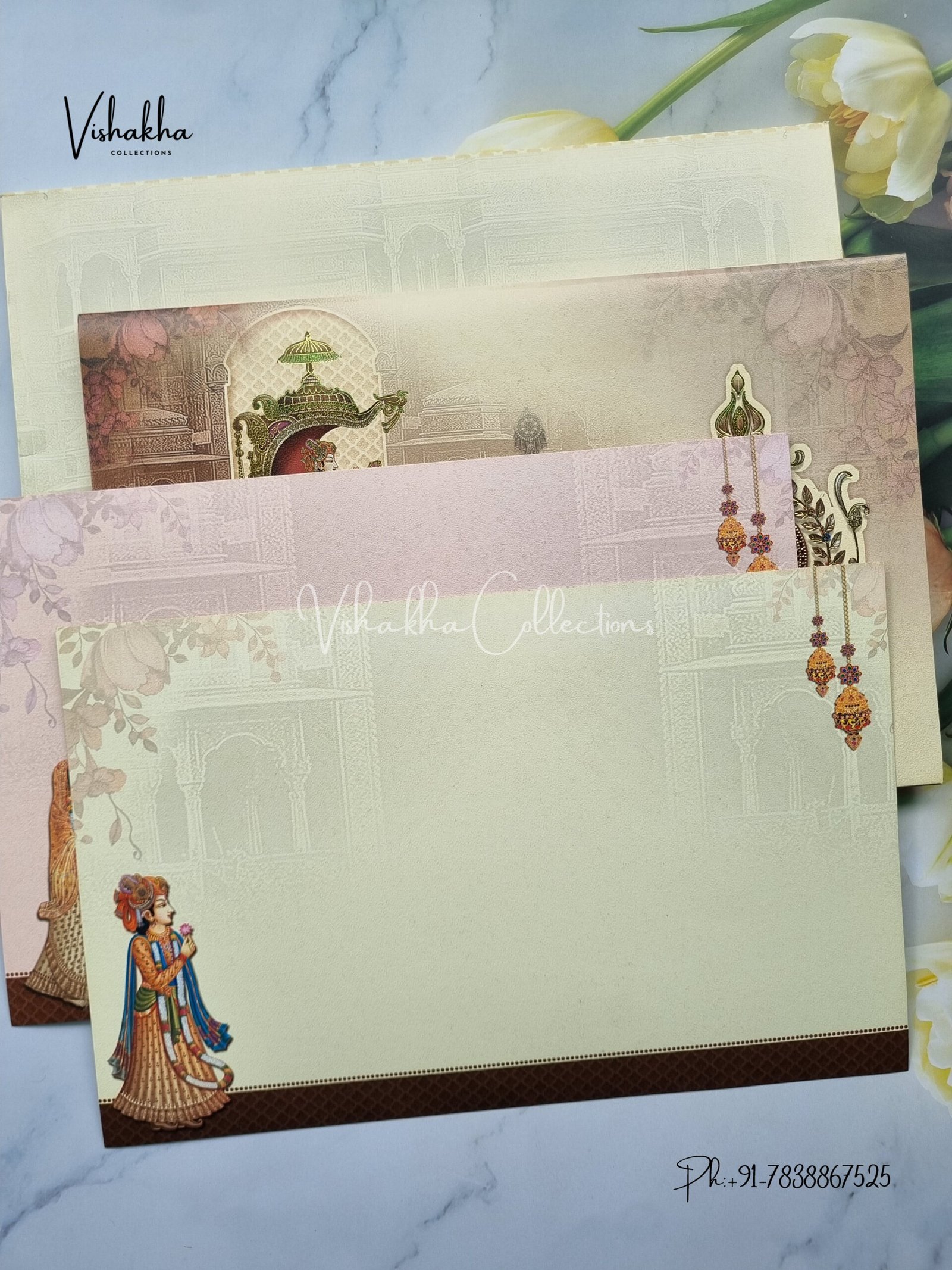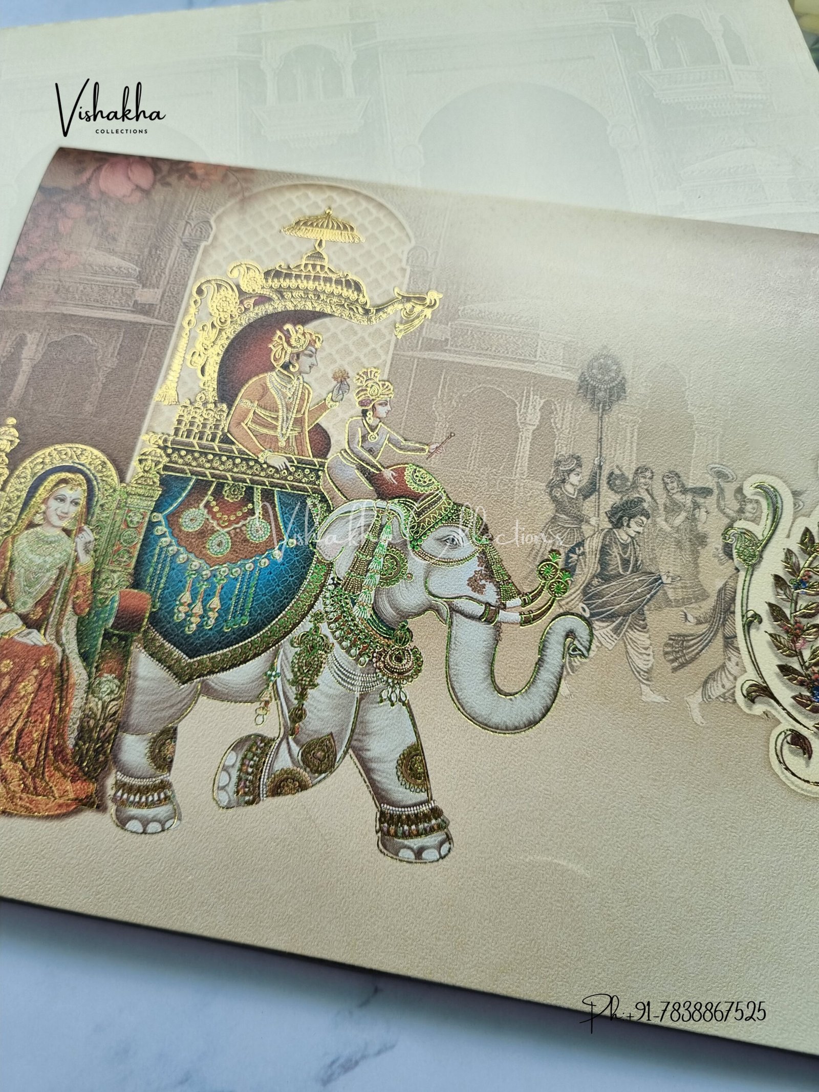Vishakha Collections presents you beautiful luxury wedding invitation cards with all latest designs and the latest variety. Its just not a wedding invitation card but a beautiful feeling of love and relationship it carries for you. Beautifully printed and packed with a bundle of love. if you like it, dont think again, just go for it.If you are worrying about the quality of the product, send your doubts to us. We are here to help you. If you want in wholesale or bulk, dont forget to contact us.
