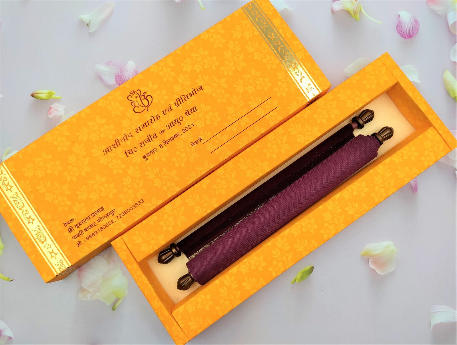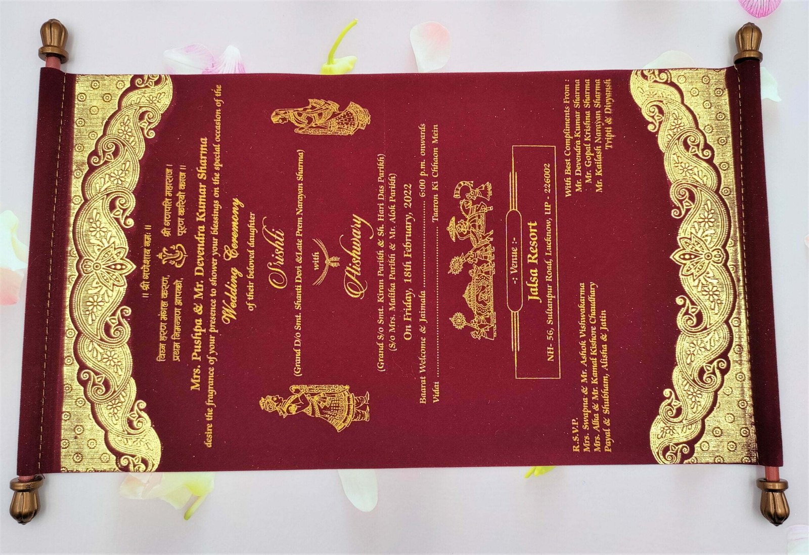 Vishakha Collections presents you beautiful luxury wedding invitation cards with all latest designs and the latest variety. Its just not a wedding invitation card but a beautiful feeling of love and relationship it carries for you. Beautifully printed and packed with a bundle of love. if you like it, dont think again, just go for it.If you are worrying about the quality of the product, send your doubts to us. We are here to help you. If you want in wholesale or bulk, dont forget to contact us.