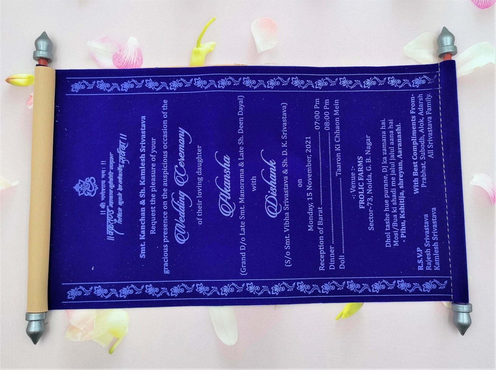 Vishakha Collections presents you beautiful luxury wedding invitation cards with all latest designs and the latest variety. Its just not a wedding invitation card but a beautiful feeling of love and relationship it carries for you. Beautifully printed and packed with a bundle of love. if you like it, dont think again, just go for it.If you are worrying about the quality of the product, send your doubts to us. We are here to help you. If you want in wholesale or bulk, dont forget to contact us.