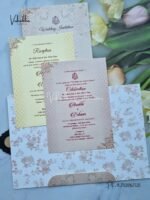 Vishakha Collections presents you beautiful luxury wedding invitation cards with all latest designs and the latest variety. Its just not a wedding invitation card but a beautiful feeling of love and relationship it carries for you. Beautifully printed and packed with a bundle of love. if you like it, dont think again, just go for it.If you are worrying about the quality of the product, send your doubts to us. We are here to help you. If you want in wholesale or bulk, dont forget to contact us.