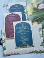 Vishakha Collections presents you beautiful luxury wedding invitation cards with all latest designs and the latest variety. Its just not a wedding invitation card but a beautiful feeling of love and relationship it carries for you. Beautifully printed and packed with a bundle of love. if you like it, dont think again, just go for it.If you are worrying about the quality of the product, send your doubts to us. We are here to help you. If you want in wholesale or bulk, dont forget to contact us.