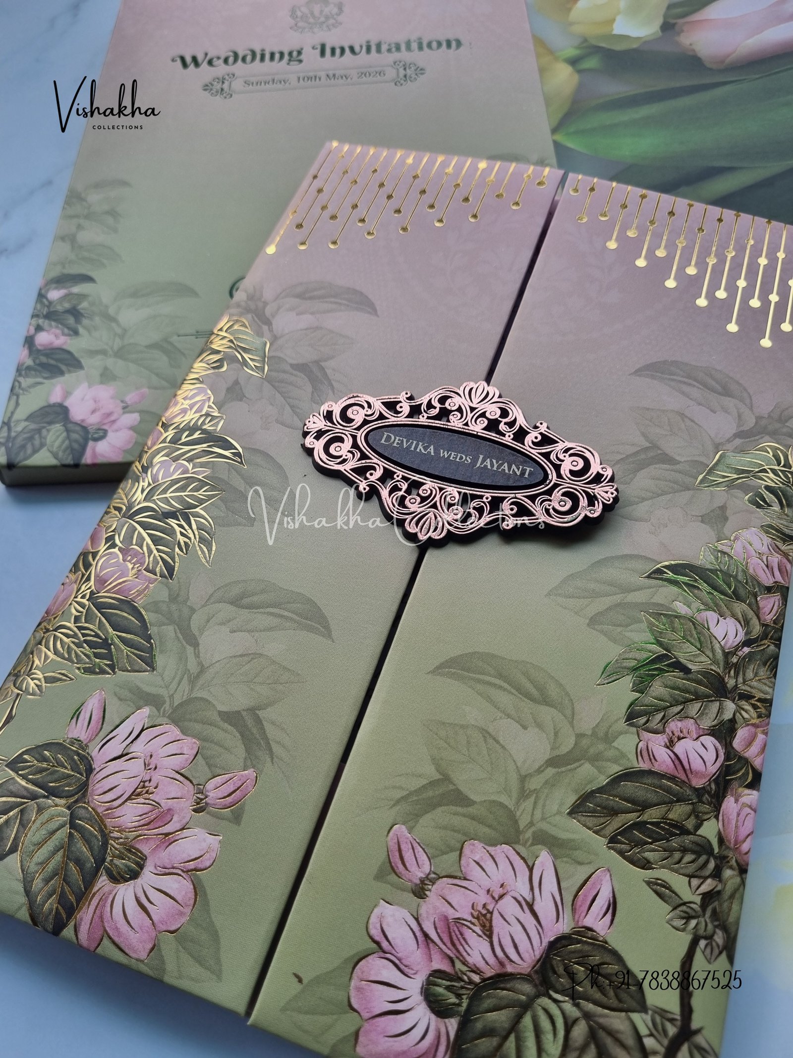 Flower Hindu Muslim Christian Sikh Padded invitation Cards VN-745