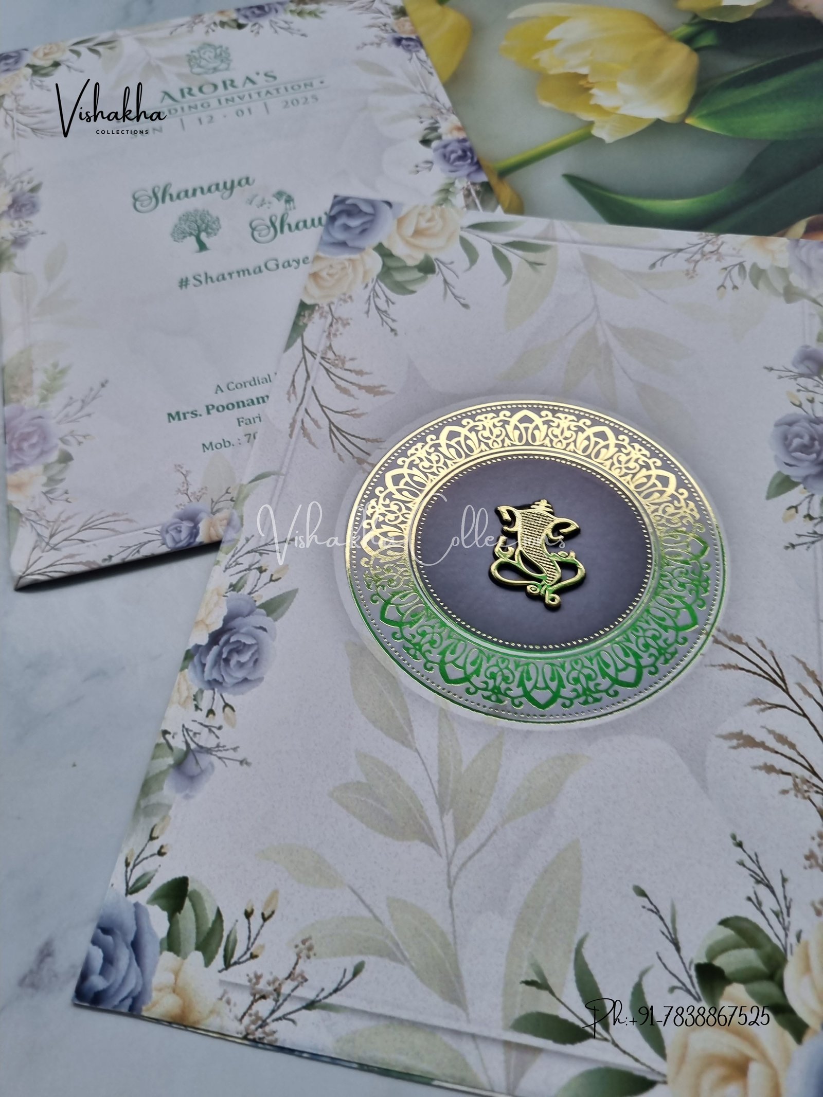 Vishakha Collections presents you beautiful luxury wedding invitation cards with all latest designs and the latest variety. Its just not a wedding invitation card but a beautiful feeling of love and relationship it carries for you. Beautifully printed and packed with a bundle of love. if you like it, dont think again, just go for it.If you are worrying about the quality of the product, send your doubts to us. We are here to help you. If you want in wholesale or bulk, dont forget to contact us.