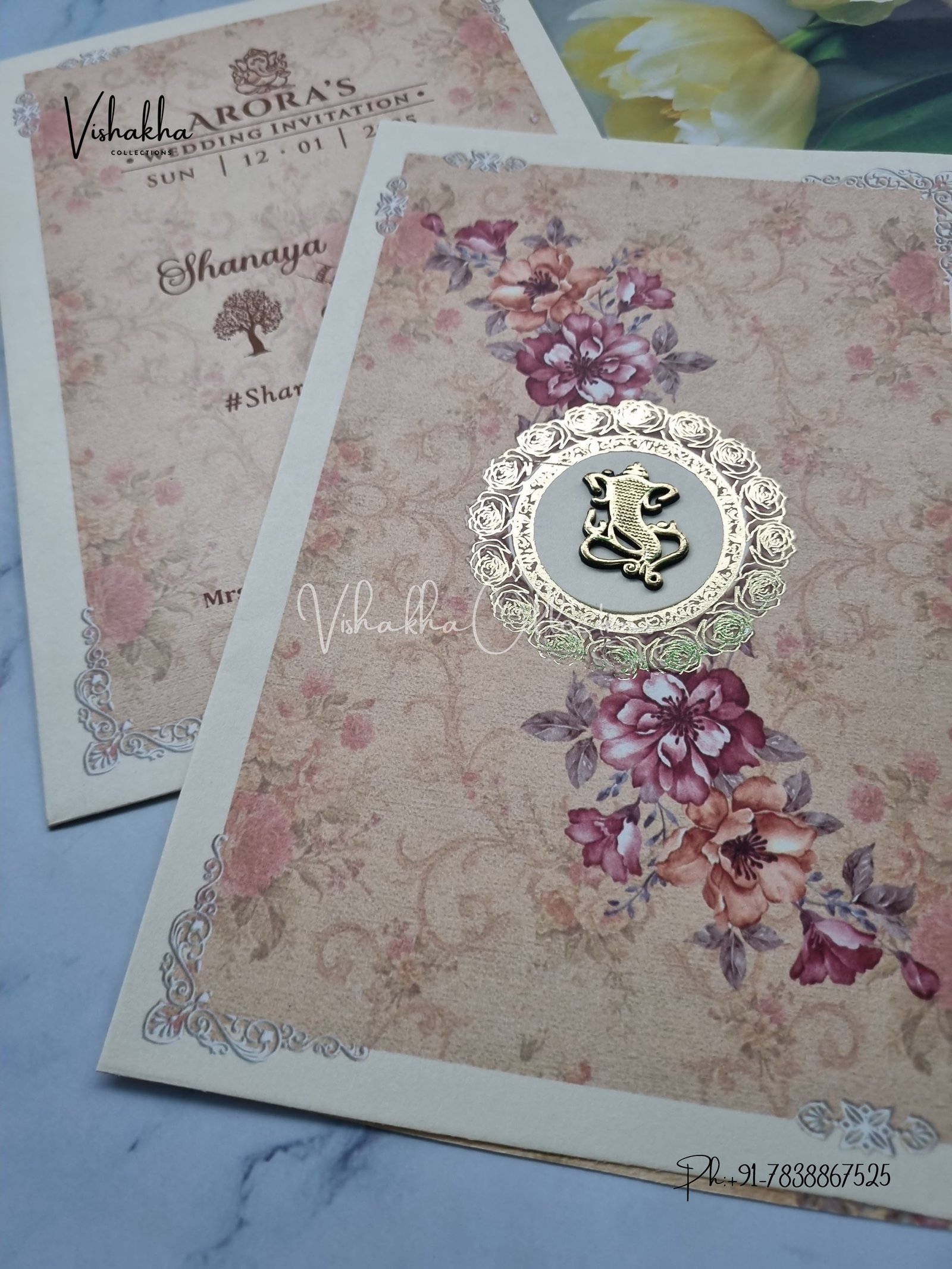 Vishakha Collections presents you beautiful luxury wedding invitation cards with all latest designs and the latest variety. Its just not a wedding invitation card but a beautiful feeling of love and relationship it carries for you. Beautifully printed and packed with a bundle of love. if you like it, dont think again, just go for it.If you are worrying about the quality of the product, send your doubts to us. We are here to help you. If you want in wholesale or bulk, dont forget to contact us.