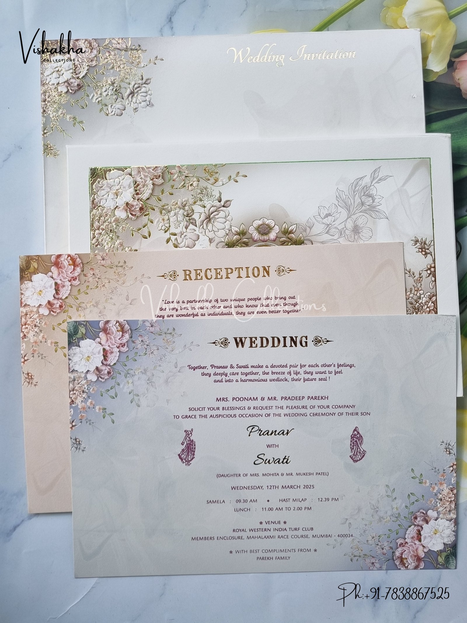 ₹372.00Flower Hindu Muslim Christian Jain Sikh Padded invitation Cards WD-9050